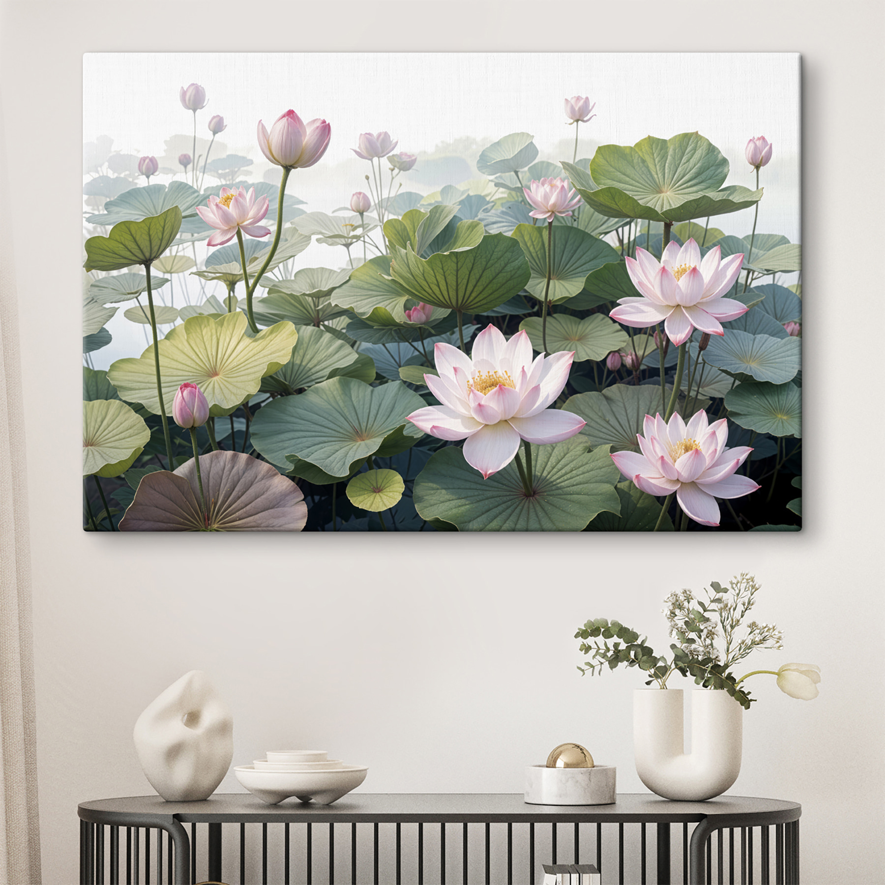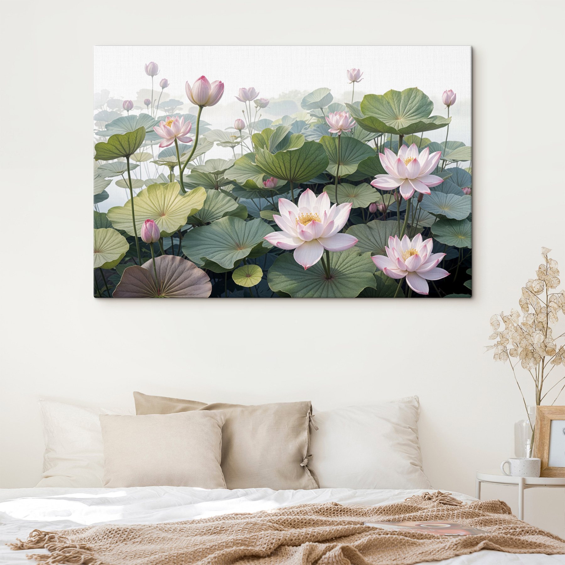 Rozjaśnij każde pomieszczenie dzięki tym oszałamiającym wydrukom na płótnie przedstawiającym różowe kwiaty pośród morza zielonych liści. Wyobraź sobie, że wchodzisz do swojego pokoju i codziennie witają Cię te piękne kwiaty – to dopiero poprawia nastrój! To jak przeniesienie odrobiny natury do wnętrza, bez wysiłku odświeżając nastrój. Delikatne różowe płatki i bujne liście zapewniają spokojną, pogodną atmosferę, idealną do popijania kawy lub zanurzenia się w dobrej książce. Poza tym, kto nie kocha odrobiny kwiatowego uroku? Ten element to łatwy sposób na podniesienie jakości wystroju bez wysiłku.