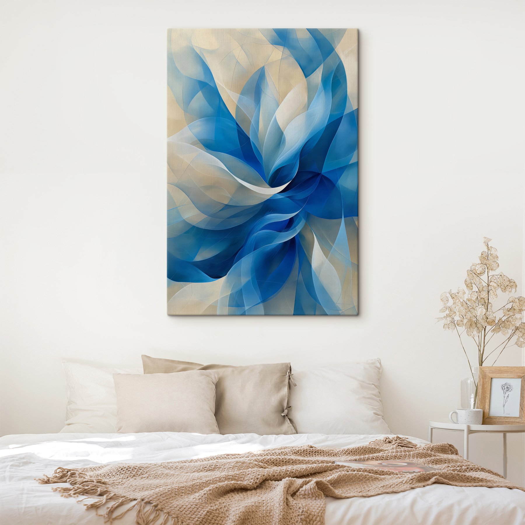 Ach, “Obraz s40243” – to jak wpatrywanie się w artystyczny wir błękitów i kremów! To dzieło – czy możemy je nazwać arcydziełem? Jasne, czemu nie – pasuje w samym sercu salonu lub przytulnego kącika do czytania. Dzięki tym żywym, płynnym odcieniom ma ten senny klimat, jakby uchwycił ulotną chwilę, w której kolor i światło tańczą razem. To rodzaj sztuki, która sprawia, że zatrzymujesz się i bierzesz głębszy oddech, wiesz?