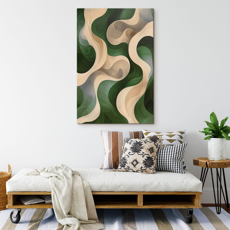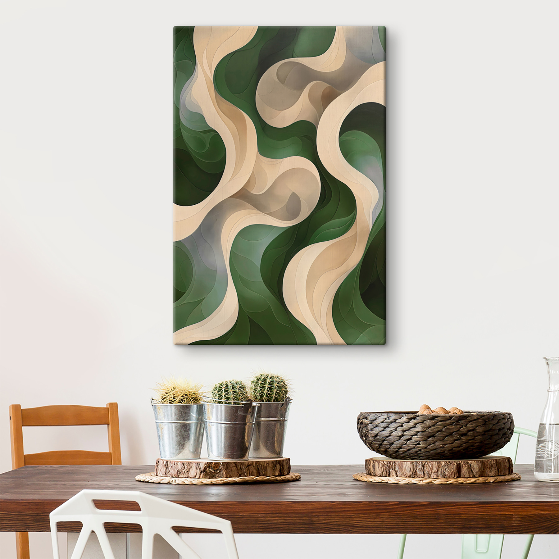 Zanurz się w świecie, w którym zieleń spotyka się z kremem w pięknym tańcu fal. Ten druk na płótnie, z jego miękkimi krzywiznami i płynnymi wzorami, przynosi spokojną atmosferę, która może przekształcić każdą przestrzeń. Wyobraź sobie, że wisi w przytulnym kąciku do czytania – idealny na spokojne popołudnia z filiżanką herbaty. Połączenie kolorów jest jak delikatna bryza w ciepły dzień, łagodna, ale podnosząca na duchu. To trochę jak spokój po ulewie, przynoszący ciszę i odrobinę natury we wnętrzu. To dzieło sztuki nie tylko siedzi na ścianie; szepcze historię o równowadze i harmonii, zapraszając za każdym razem do bliższego przyjrzenia się. Dodaj ten element do swojego wystroju i obserwuj, jak Twój pokój ożywa w subtelny, ale piękny sposób.