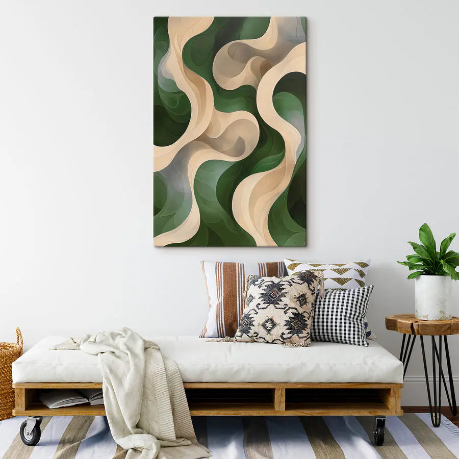 Zanurz się w świecie, w którym zieleń spotyka się z kremem w pięknym tańcu fal. Ten druk na płótnie, z jego miękkimi krzywiznami i płynnymi wzorami, przynosi spokojną atmosferę, która może przekształcić każdą przestrzeń. Wyobraź sobie, że wisi w przytulnym kąciku do czytania – idealny na spokojne popołudnia z filiżanką herbaty. Połączenie kolorów jest jak delikatna bryza w ciepły dzień, łagodna, ale podnosząca na duchu. To trochę jak spokój po ulewie, przynoszący ciszę i odrobinę natury we wnętrzu. To dzieło sztuki nie tylko siedzi na ścianie; szepcze historię o równowadze i harmonii, zapraszając za każdym razem do bliższego przyjrzenia się. Dodaj ten element do swojego wystroju i obserwuj, jak Twój pokój ożywa w subtelny, ale piękny sposób.