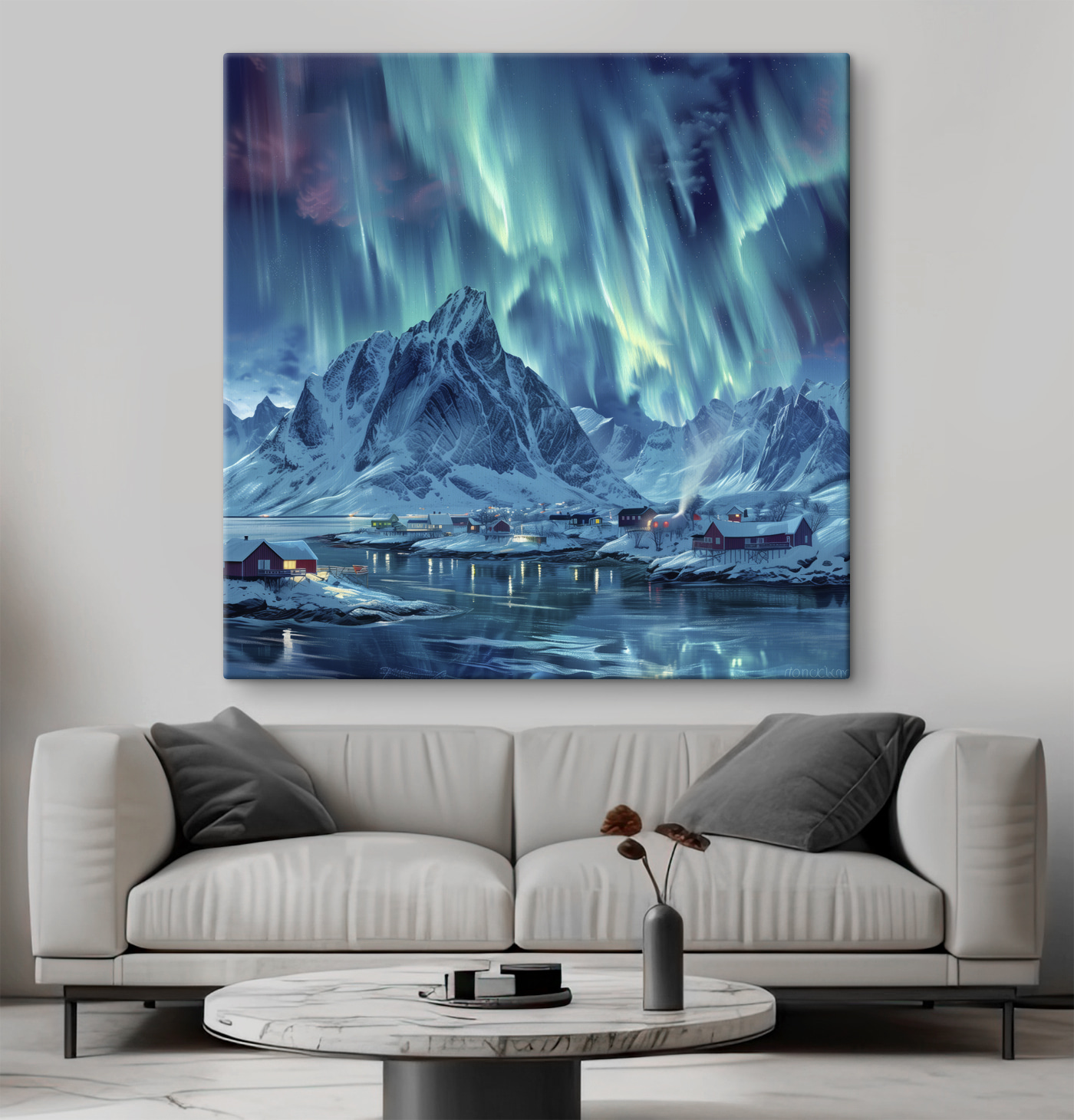 Wyobraź to sobie – siedzisz w swoim salonie, popijając coś ciepłego, a w powietrzu unosi się ta spokojna atmosfera. Dlaczego? Ponieważ na ścianie, tuż przed tobą, znajduje się ten hipnotyzujący wydruk na płótnie. To jak mroźny uścisk samej natury. Ośnieżone pasmo górskie wygląda na duże, a jednocześnie przytulne, z uroczą małą wioską schowaną w oddali. Można niemal poczuć chrzęst śniegu pod stopami. Jest to zarówno relaksujące, jak i nieco magiczne – idealne miejsce na marzenia lub relaks po długim dniu. Rodzaj sztuki, która szepcze do ciebie historie… kto nie potrzebuje trochę tego w swoim życiu?