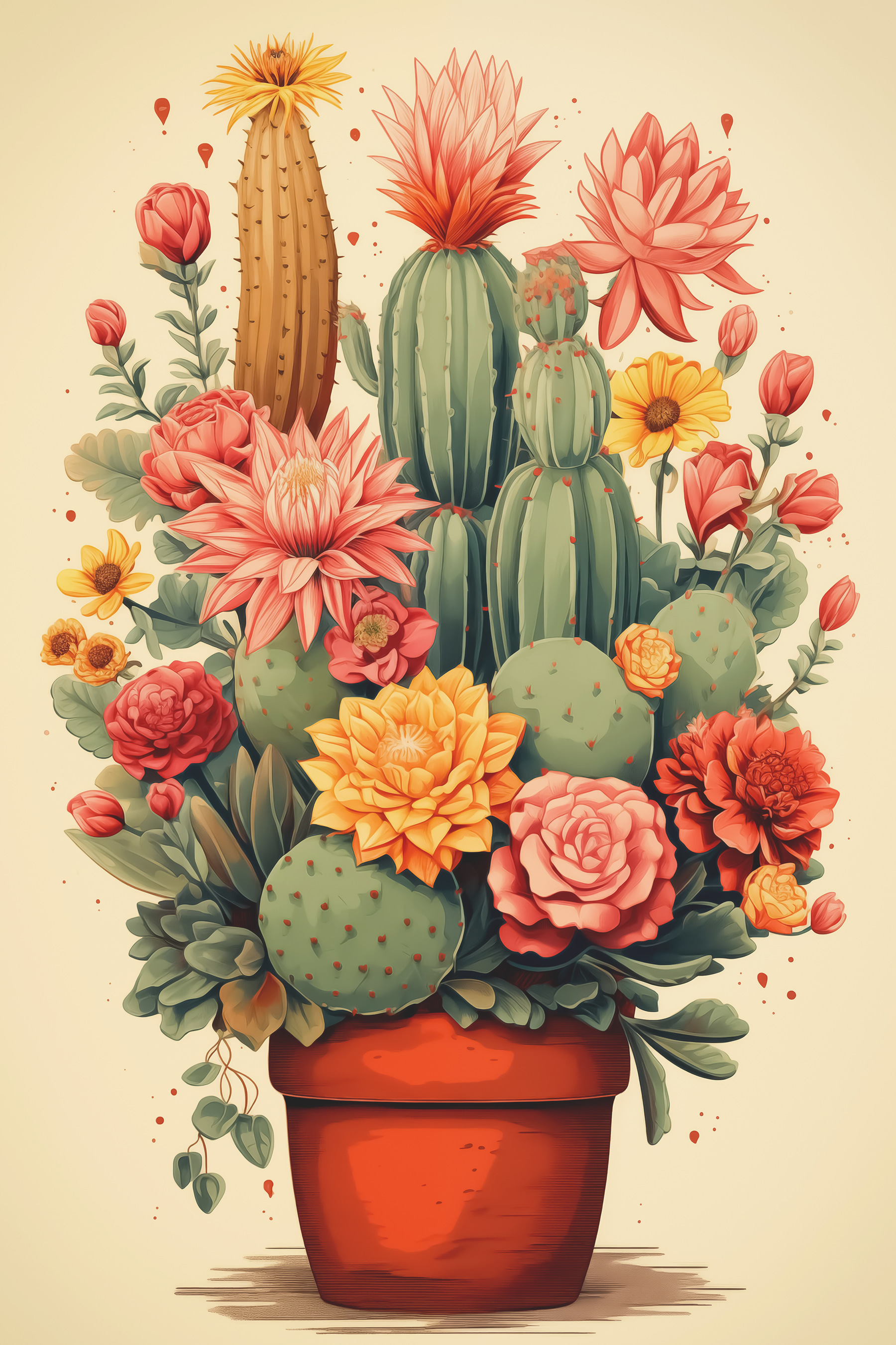 Czy kiedykolwiek wszedłeś do pokoju i od razu poczułeś się szczęśliwszy? To właśnie magia, którą wnoszą “Obraz s40316”. Wyobraź sobie te żywe plamy różowych, żółtych i pomarańczowych kwiatów, które rozjaśniają przestrzeń w ponury dzień. To jak posiadanie mini ogrodu w domu – bez podlewania! Połączenie kaktusów i kwiatów jest nieoczekiwane, ale całkowicie zachwycające, dzięki czemu idealnie nadaje się do każdego pomieszczenia, które potrzebuje odrobiny życia i koloru.