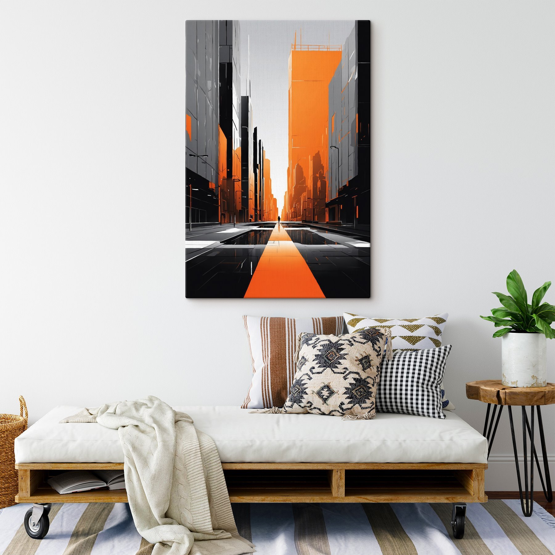 Spójrz na to eleganckie piękno! “Obraz s40336” to idealne połączenie miejskiego chłodu i nowoczesnej sztuki. Wyobraź to sobie: szaro-pomarańczowy pejzaż miejski, który niemal czuje się jak żywy. To tak, jakbyś natknął się na cichą ulicę o zmierzchu, z cieniami tańczącymi na budynkach. Odważne pomarańczowe smugi? Po prostu wyskakują, dając ci ten pęd miejskiego życia bez całego hałasu.