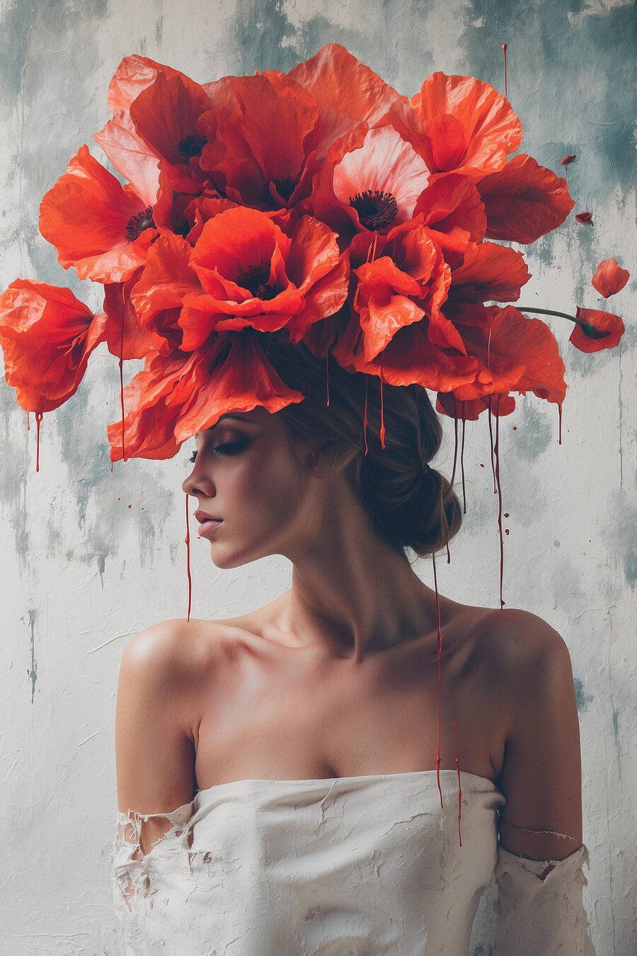 Wyobraź sobie, że wchodzisz do pokoju i wita Cię ten wspaniały obraz na płótnie. Kobieta ozdobiona żywymi czerwonymi kwiatami, promieniująca zarówno siłą, jak i wdziękiem. Te odważne kwiaty wymagają uwagi, prawie jakby szeptały tajemnice lata. Wyobraź sobie, jak mogą wywołać radość w przytulnym kąciku do czytania lub dodać odrobinę koloru do minimalistycznej przestrzeni. Sposób, w jaki te czerwienie wyskakują na delikatnie teksturowanym tle? To tak, jakby natura i artyzm połączyły siły w pięknej rozmowie. Ten element to nie tylko wystrój; to nastrój, historia czekająca na rozwinięcie. I bądźmy szczerzy – kto nie chciałby kawałka, który czuje się jak ciepły uścisk w nudny dzień?