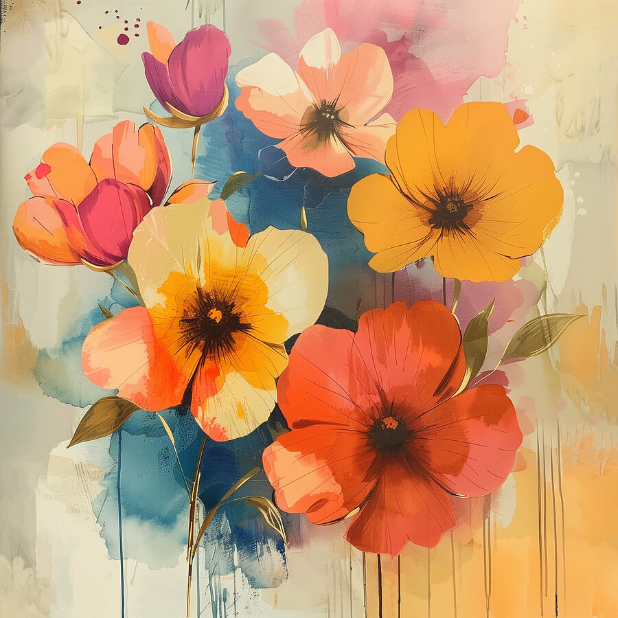 Wnieś odrobinę koloru do każdego pomieszczenia dzięki temu żywemu obrazowi na płótnie przedstawiającemu wesołe kwiaty. Wyobraź sobie, że wchodzisz do kwitnącego ogrodu za każdym razem, gdy na niego spojrzysz – te radosne barwy wydają się tańczyć na ścianie. To tak, jakby mieć radość natury uchwyconą na zawsze! Być może wywoła to ochotę na świeże kwiaty, a nawet przyjęcie w ogrodzie. Idealny do przytulnych zakątków lub tętniącego życiem salonu, ten element dodaje ciepła bez konieczności utrzymywania prawdziwych roślin. Niech przypomina ci o słonecznych dniach i beztroskich chwilach; może po prostu poprawić ci nastrój, gdy będziesz tego najbardziej potrzebować.