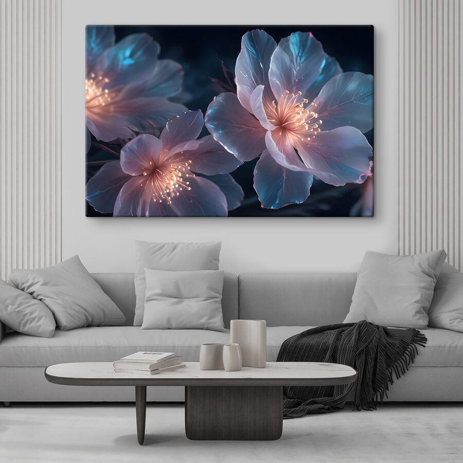 Przekształć dowolną ścianę w senną ucieczkę z tym czarującym płótnem “Luminous Petals in Twilight Dance”. Wyobraź sobie, że wchodzisz do ogrodu o zmierzchu, w którym kwiaty wydają się delikatnie świecić, gdy dzień zanika. Łagodne odcienie i delikatne kształty nie tylko wprowadzają naturę do wnętrza, ale także zachęcają do pogodnej atmosfery, która może natychmiast rozjaśnić nastrój pomieszczenia. Wyobraź sobie popijanie herbaty, zanurzone w tym spokojnym pięknie – być może nawet zapominając o chaosie dnia. Idealny do dodania odrobiny życia do ulubionego zakątka, ten nadruk przypomina o uroku natury, niezależnie od pory roku. Idealnie ludzki, idealnie uroczy!
