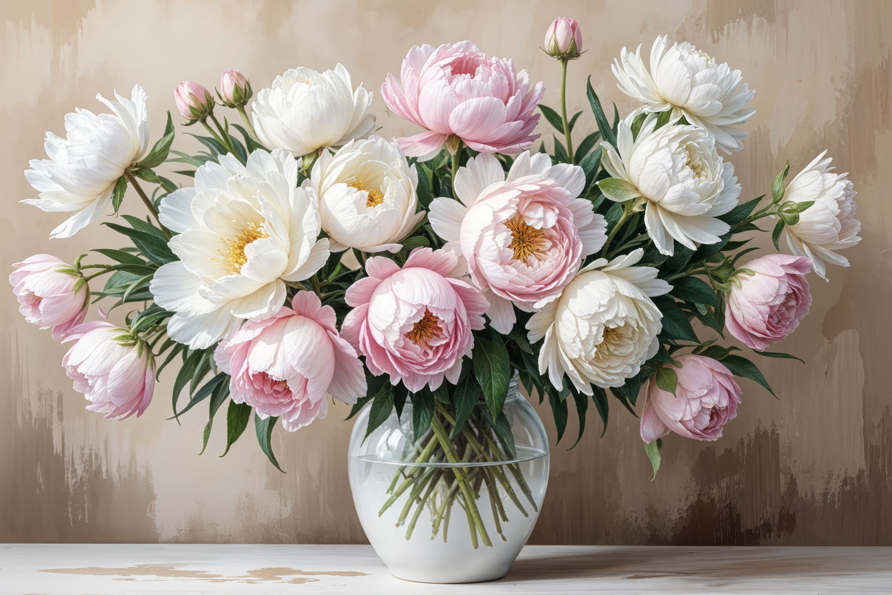 Rozjaśnij swoją przestrzeń dzięki temu wspaniałemu obrazowi na płótnie “Wazon z kwiatami na stole”. To jak przeniesienie kawałka wiosny do domu, bez konieczności podlewania! Wyobraź sobie, że wchodzisz do pokoju, w którym piwonie eksplodują kolorami – delikatnymi różami i bielami bawiącymi się razem jak starzy przyjaciele. Ciepłe, zachęcające tło dodaje przytulnego charakteru. Niezależnie od tego, czy jest to elegancki salon, czy spokojna sypialnia, to dzieło sztuki wywołuje radość i mnóstwo komplementów. Idealny do marzeń na jawie lub nadrabiania zaległości z dobrą książką, jest jak mały uścisk dla oczu. Kto by się na to nie uśmiechnął?