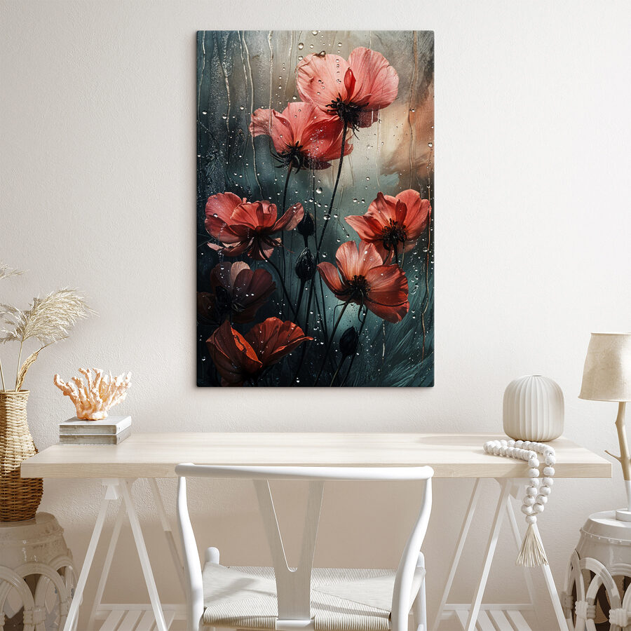 Wnieś odrobinę dramatyzmu natury do swojej przestrzeni dzięki dekoracji “Rain-kissed blossoms embrace the storm”. Wyobraź sobie te delikatne kwiaty tańczące pod delikatnym deszczem, z kroplami lśniącymi jak małe klejnoty. Umieszczony na miękkim, nastrojowym tle, ten wydruk na płótnie oddaje zarówno kruchość, jak i odporność życia. To delikatne przypomnienie, że burze mogą ustąpić miejsca pięknu. Idealny na pustą ścianę błagającą o uwagę lub do wywołania rozmowy przy przytulnej filiżance herbaty. Niech te kwiaty tchną życie, kolor i odrobinę intrygi w każde pomieszczenie. Kto nie chciałby przytulić się w takiej atmosferze?