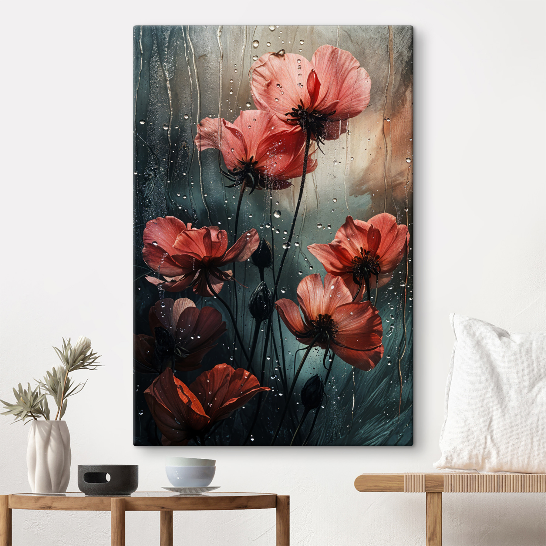 Wnieś odrobinę dramatyzmu natury do swojej przestrzeni dzięki dekoracji “Rain-kissed blossoms embrace the storm”. Wyobraź sobie te delikatne kwiaty tańczące pod delikatnym deszczem, z kroplami lśniącymi jak małe klejnoty. Umieszczony na miękkim, nastrojowym tle, ten wydruk na płótnie oddaje zarówno kruchość, jak i odporność życia. To delikatne przypomnienie, że burze mogą ustąpić miejsca pięknu. Idealny na pustą ścianę błagającą o uwagę lub do wywołania rozmowy przy przytulnej filiżance herbaty. Niech te kwiaty tchną życie, kolor i odrobinę intrygi w każde pomieszczenie. Kto nie chciałby przytulić się w takiej atmosferze?