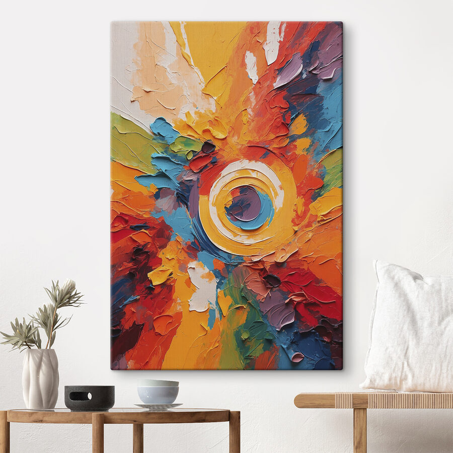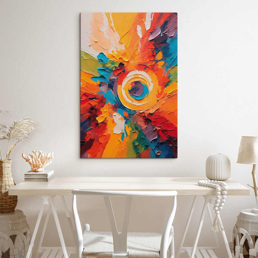 Rozjaśnij każdą przestrzeń dzięki temu żywemu drukowi na płótnie o nazwie “Obraz Painting of a circle”. To jak eksplozja radości rozpryśnięta na ścianie, ubierająca wiry kolorów, które czują się żywe. Wyobraź sobie przyjaciół gromadzących się wokół, ich rozmowy mieszające się z odcieniami – może ktoś nawet zrobi komplement i ogłosi to arcydziełem wieczoru. Okrąg w centrum przyciąga wzrok, tworząc piękny punkt centralny, który wywołuje zachwyt. Idealny do salonu lub przytulnego kącika, to nie tylko grafika ścienna; to klimat. Pozwól kolorom tańczyć; pozwól swoim ścianom trochę odetchnąć.