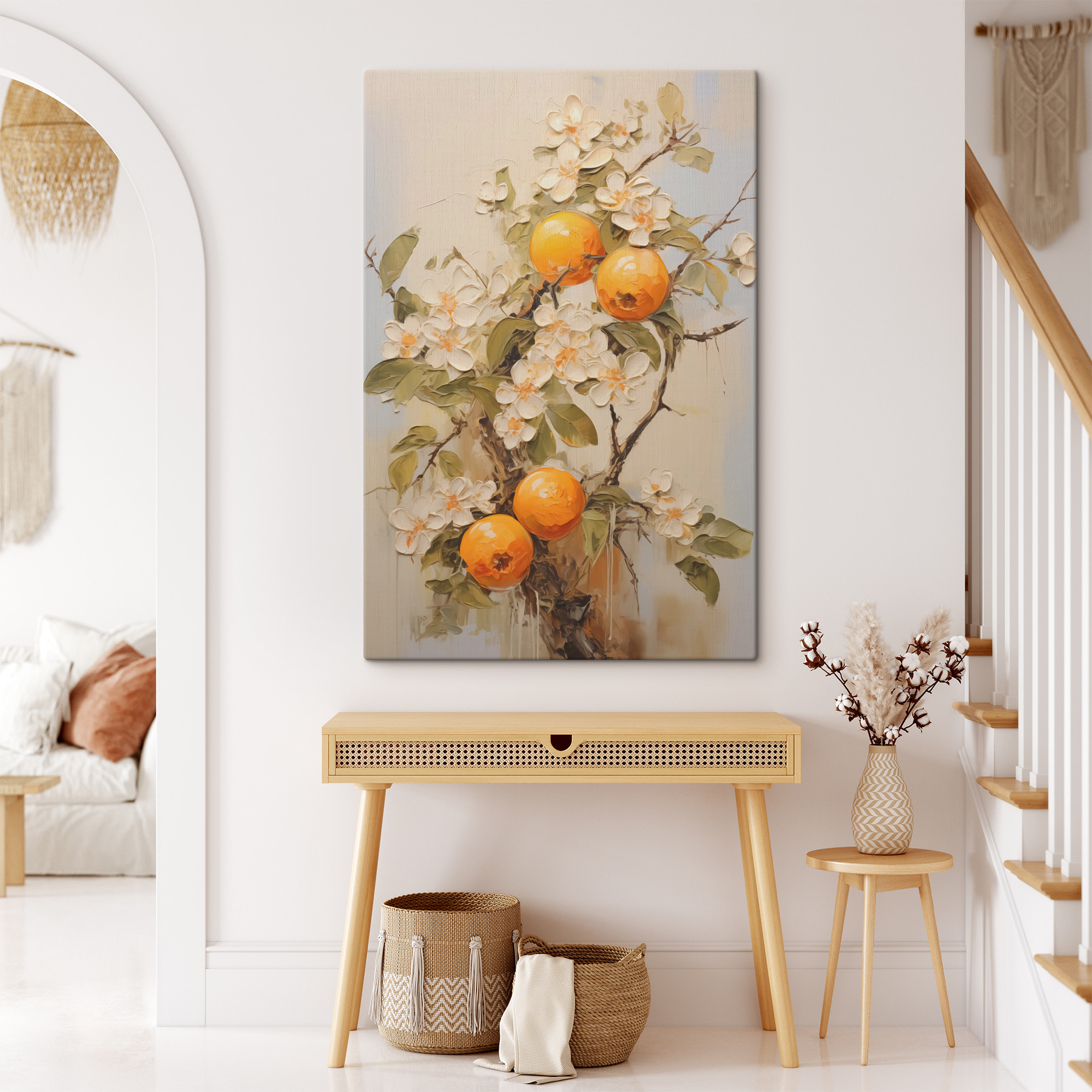 Rozjaśnij każdą przestrzeń dzięki temu wspaniałemu drukowi na płótnie przedstawiającemu urocze pomarańcze pośród delikatnych kwiatów. To jak przeniesienie kawałka słonecznego sadu do wnętrza. Wyobraź sobie, że wisi w przytulnej kuchni lub wesołej jadalni – z pewnością pobudzi do rozmów. Żywe pomarańcze wyskakują na tle delikatnych odcieni, tworząc orzeźwiający punkt centralny. Wyobraź sobie, że popijasz poranną kawę, wygrzewając się w jej ciepłym blasku. To nie tylko sztuka; to poprawiacz nastroju, którego każdy potrzebuje. Brakuje tylko słodkiego zapachu cytrusów! Ten przedmiot jest idealny dla każdego, kto docenia piękno natury w wyjątkowy sposób.