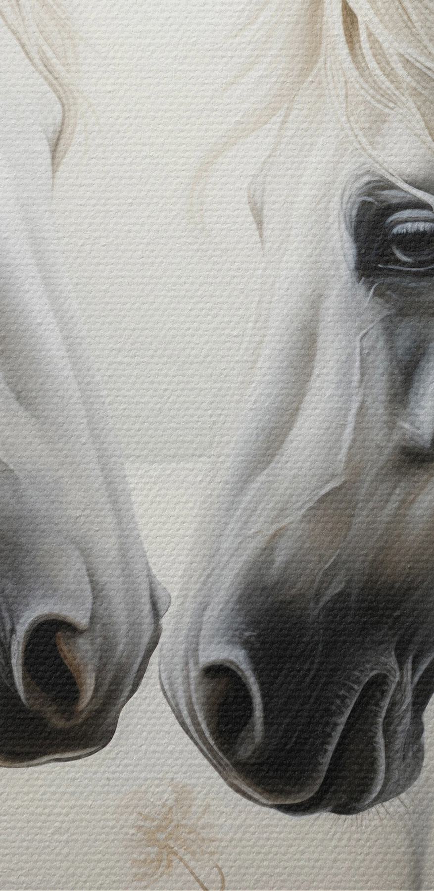 Wyobraź sobie, że wchodzisz do pokoju i witają Cię dwa wspaniałe konie, których rozwiane grzywy niemal tańczą na delikatnej bryzie. Ten wydruk na płótnie, przedstawiający te oszałamiające stworzenia, dodaje atmosferę spokoju do każdej przestrzeni. Umieść go nad przytulnym kominkiem lub w spokojnej sypialni, zapraszając tych, którzy go zobaczą, do zatrzymania się, oddechu i docenienia piękna natury. Miękkie kolory i delikatne detale sprawiają, że czujesz się jak we śnie. Niezależnie od tego, czy jesteś miłośnikiem zwierząt, czy po prostu kimś, kto docenia sztukę, która koi duszę, ten kawałek z pewnością wywoła rozmowy i wywoła uśmiech. Kto nie chciałby mieć na swojej ścianie kawałka spokoju?