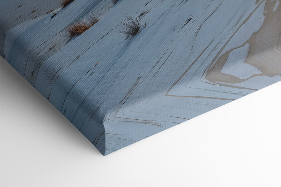 Wyobraź sobie świat, w którym czas stoi w miejscu. To płótno przedstawia kobietę z gracją wędrującą przez ośnieżone wydmy, otoczoną majestatycznymi górami pod sennym, księżycowym niebem. Coś w jego spokojnym pięknie wydaje się szeptać tajemnice cudów natury. Idealny do tych przytulnych zakątków w domu, które potrzebują odrobiny spokoju. To rodzaj dzieła sztuki, które zachęca do marzeń i spokojnych chwil, sprawiając, że tęsknisz za kubkiem gorącego kakao, zastanawiając się nad prostymi radościami życia. Prawdziwa ucieczka na płótnie.