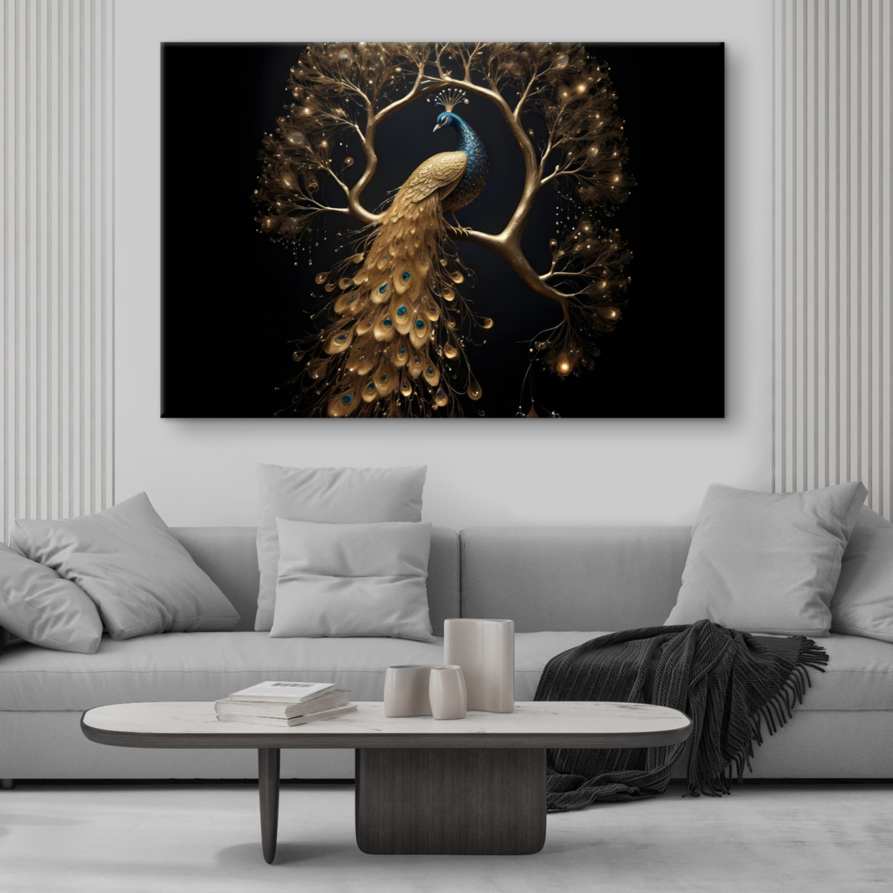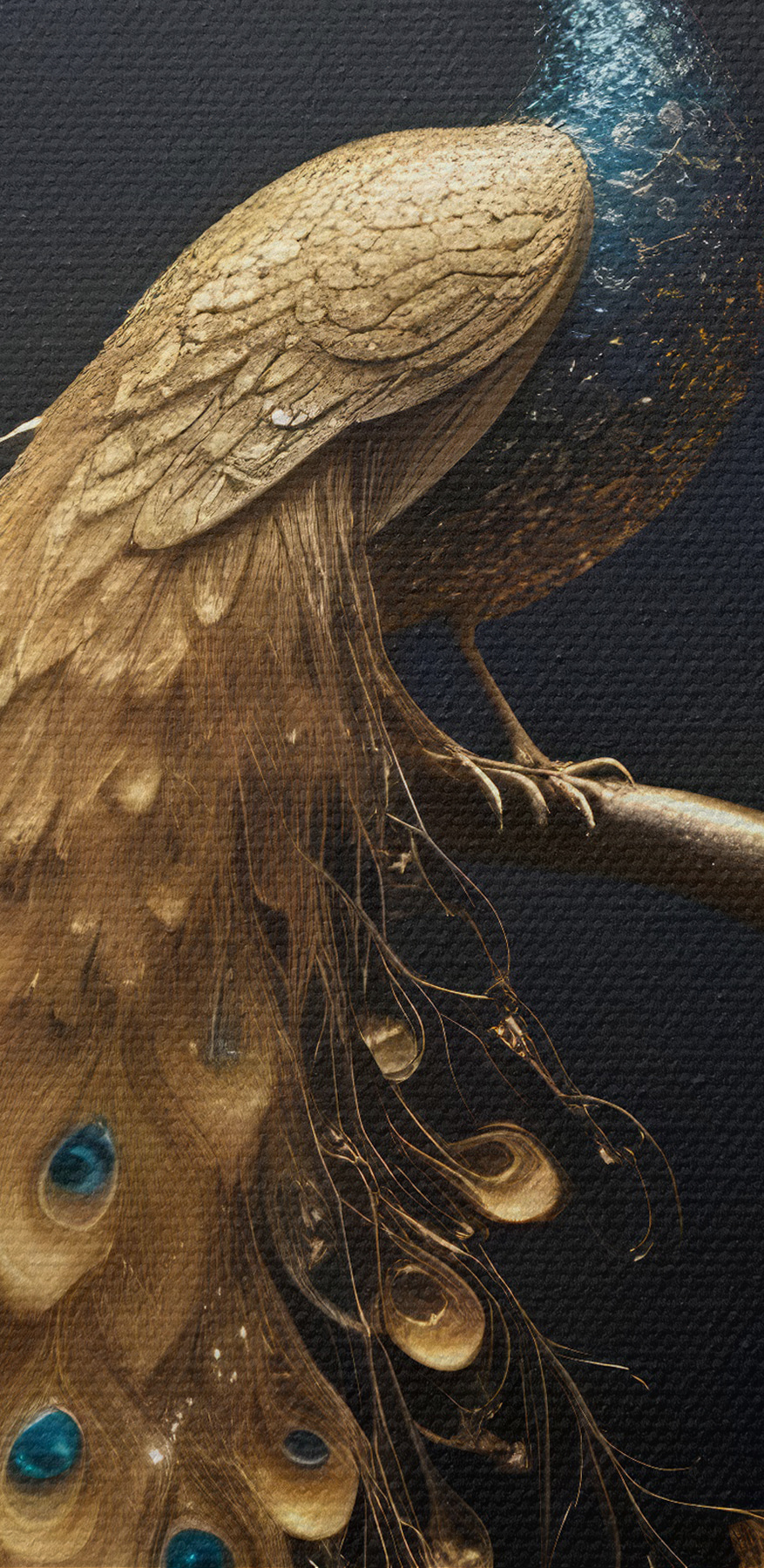 Wyobraź sobie: paw wylegujący się na kolanach w eleganckich objęciach natury – niezły widok, co? Z tymi wszystkimi wspaniałymi piórami i nutką tajemniczości, to trochę tak, jakbyś wszedł do sekretnego ogrodu, gdzie elegancja i urok rozbiły obóz. Idealny do dodania odrobiny dramatyzmu natury do każdego pomieszczenia. Przyjaciele mogą po prostu wejść i zostać dłużej, oczarowani jej wdziękiem. To jak własne arcydzieło natury – bez kłopotów z nasionami dla ptaków. Idealny do inicjowania rozmów lub po prostu zagubienia się w jego skomplikowanym pięknie.