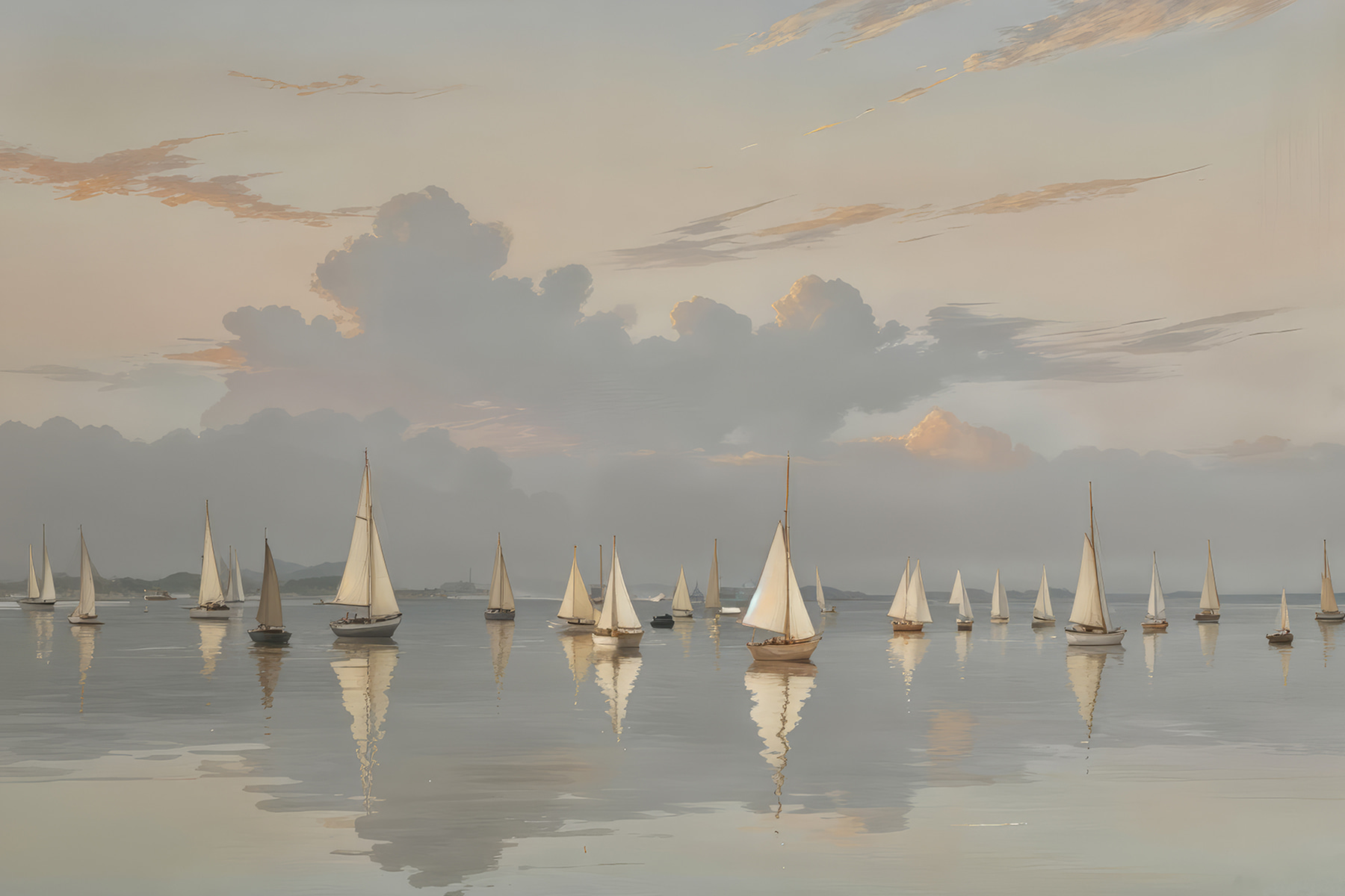 Wyobraź to sobie: grupa żaglówek leniwie dryfujących po spokojnym morzu, jakby matka natura wcisnęła przycisk drzemki. Ten obraz na płótnie doskonale oddaje ten senny nastrój. Miękkie odcienie nieba łączą się ze spokojną wodą, sprawiając, że niemal pachnie morską bryzą i przygodą. Idealny dla marzycieli lub każdego, kto kiedykolwiek tęsknił za ucieczką. Powieś go w swoim salonie lub biurze, a nagle poczujesz się tak, jakby twoje ściany miały swój własny sekretny azyl, w którym jedynym pędem jest wiatr. Nieźle, prawda?