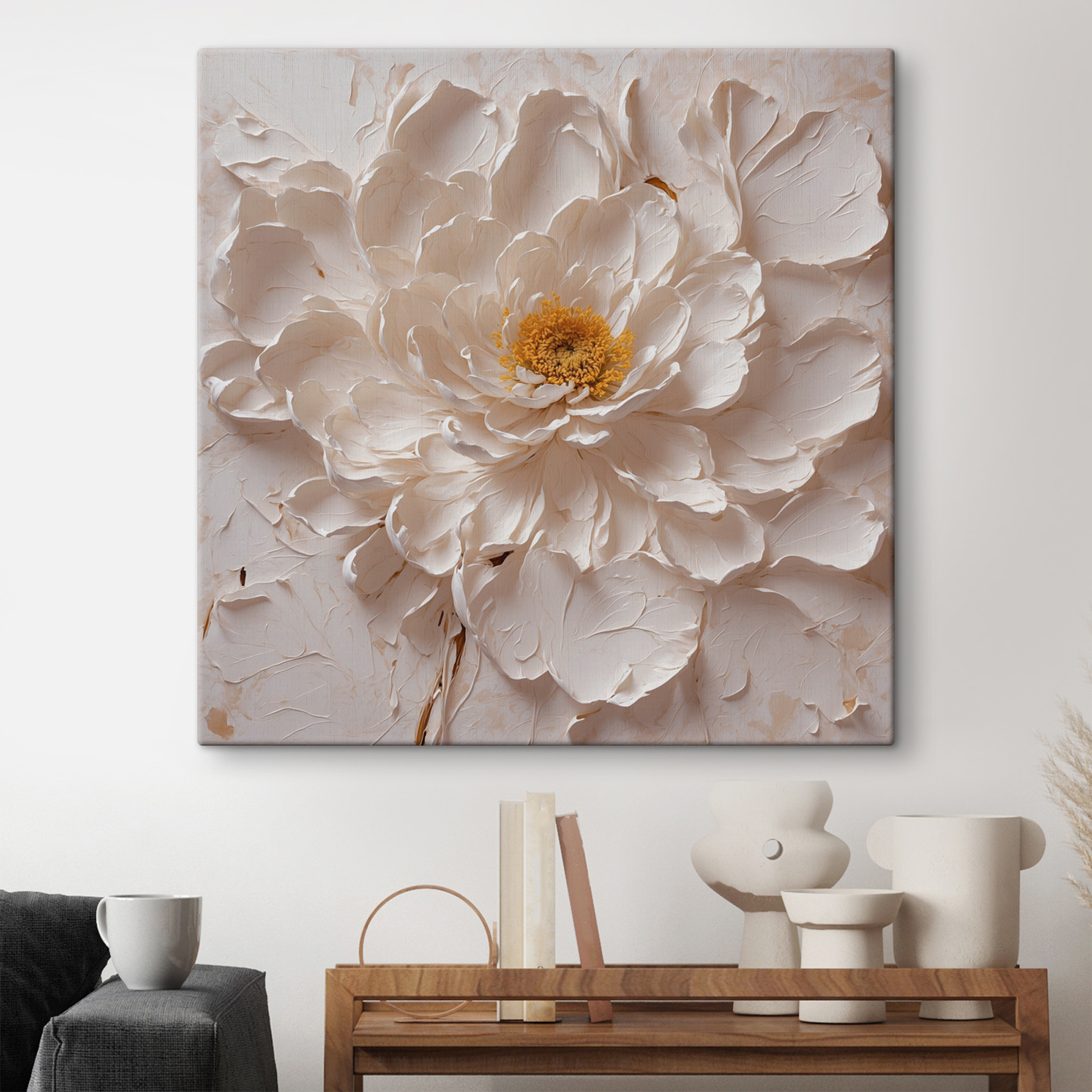 Transformacja ściany nigdy nie była tak łatwa. Ten “Obraz White Flower with a Yellow Center” doda odrobinę uroku natury prosto do Twojego domu. Wyobraź sobie, że wisi w przytulnym salonie lub jasnym domowym biurze – nagle wszyscy wędrują, aby rzucić okiem. Miękkie płatki sprawiają, że niemal chce się je dotknąć. To jak przeniesienie małego ogrodu do środka, bez konewki. Idealny dla każdego, kto chce dodać odrobinę koloru i spokoju bez zbędnego zamieszania. Przygotuj się na bycie dumnym posiadaczem kwiatowego cudu, który może po prostu skraść show.