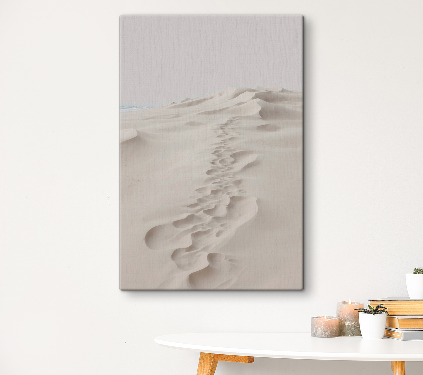 Wyobraź sobie, że odpoczywasz w swoim salonie z delikatną bryzą szepczącą do ucha. To właśnie wnosi do Twojej przestrzeni obraz “Footprints in the Sand”. To nie tylko obraz – to uczucie. Te piaszczyste ślady mogą prowadzić gdziekolwiek… może do ukrytego baru tiki lub sekretnego miejsca zachodu słońca. To tak, jakby plaża witała cię w domu, bez lepkiego piasku między palcami. Idealny zarówno dla miłośników przyrody, jak i marzycieli, zamienia każdy pokój w spokojną plażową ucieczkę. Tylko nie zapomnij o filtrze przeciwsłonecznym – mówiąc obrazowo!