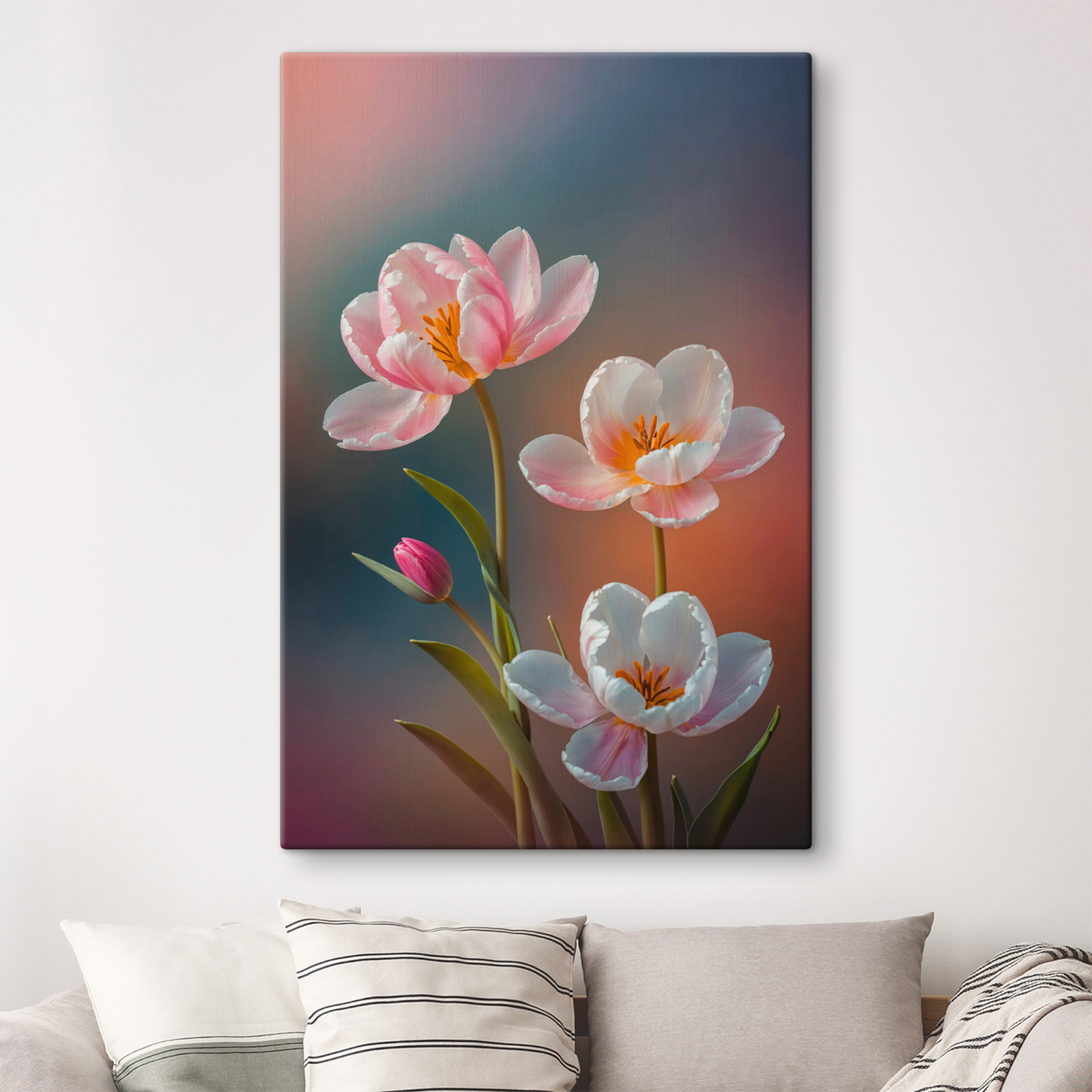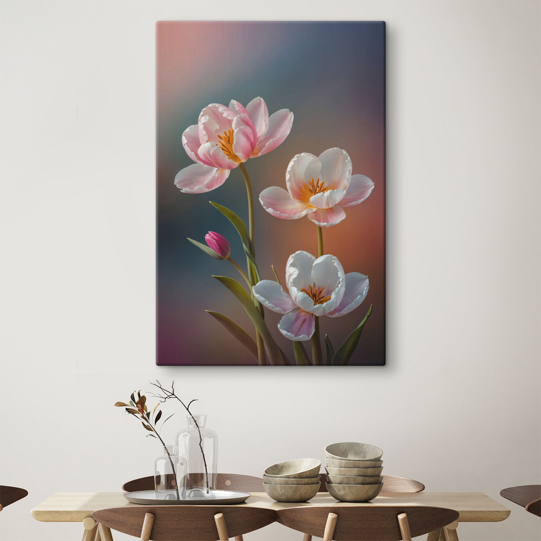 Wyobraź sobie, że popijasz poranną herbatę, wpatrując się w te rozmarzone różowo-białe kwiaty na ścianie. Ten wydruk na płótnie to nie tylko sztuka – to nastrój. Każdy kwiat wygląda, jakby delikatnie śpiewał melodię cichej elegancji i wibrującego spokoju. Idealny do małego kącika zen, a może miejsca, do którego wędrujesz z dobrą książką i ciepłą narzutą. To tak, jakby wnieść szept wiosny do swojej przestrzeni, bez kichania. Delikatna pobudka dla zmysłów, obiecująca opowieść o ponadczasowym pięknie.