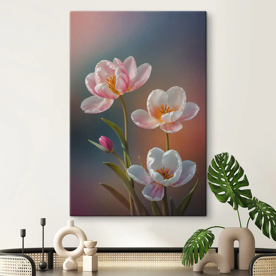 Wyobraź sobie, że popijasz poranną herbatę, wpatrując się w te rozmarzone różowo-białe kwiaty na ścianie. Ten wydruk na płótnie to nie tylko sztuka – to nastrój. Każdy kwiat wygląda, jakby delikatnie śpiewał melodię cichej elegancji i wibrującego spokoju. Idealny do małego kącika zen, a może miejsca, do którego wędrujesz z dobrą książką i ciepłą narzutą. To tak, jakby wnieść szept wiosny do swojej przestrzeni, bez kichania. Delikatna pobudka dla zmysłów, obiecująca opowieść o ponadczasowym pięknie.