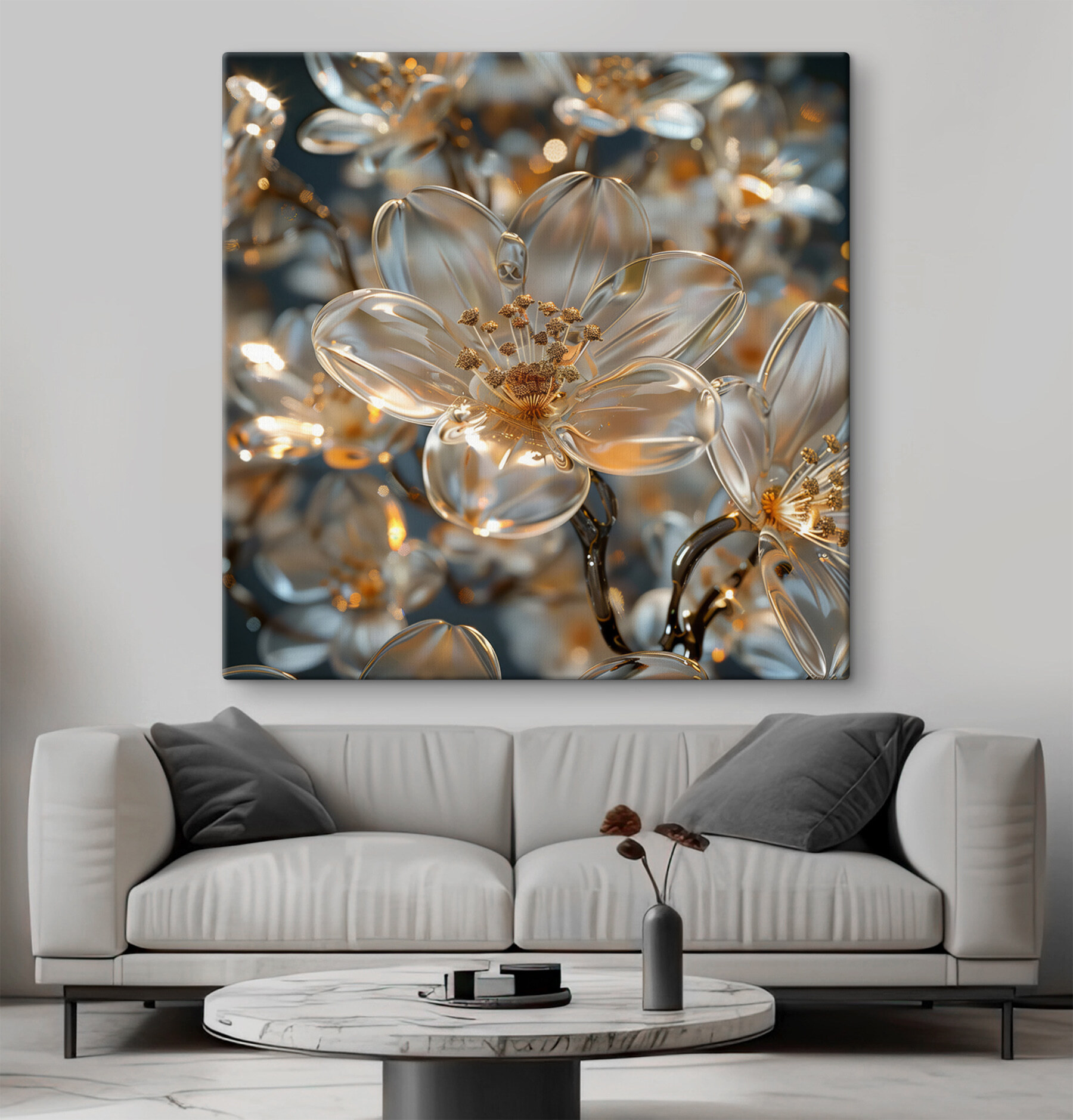 Rozjaśnij każde pomieszczenie dzięki obrazowi na płótnie “Delicate Blossoms in Soft Hues”. Ten obraz to nie tylko sztuka – to powiew świeżego powietrza. Wyobraź sobie, że wchodzisz do pomieszczenia, w którym delikatne kwiaty zdają się rozkwitać tuż przy ścianie, tańcząc z delikatnymi kolorami, które szepczą spokój. To jak znalezienie ukrytego ogrodu w swoim domu. Idealny do tych przytulnych zakątków lub tego miejsca nad kanapą, które aż prosi się o odrobinę piękna. Poza tym, kto nie potrzebuje odrobiny kwiatowego stylu? Przyjaciele i rodzina mogą po prostu pomyśleć, że masz sekretny zielony kciuk. To delikatne przypomnienie o elegancji natury, a wszystko to bez uciążliwych pyłków!