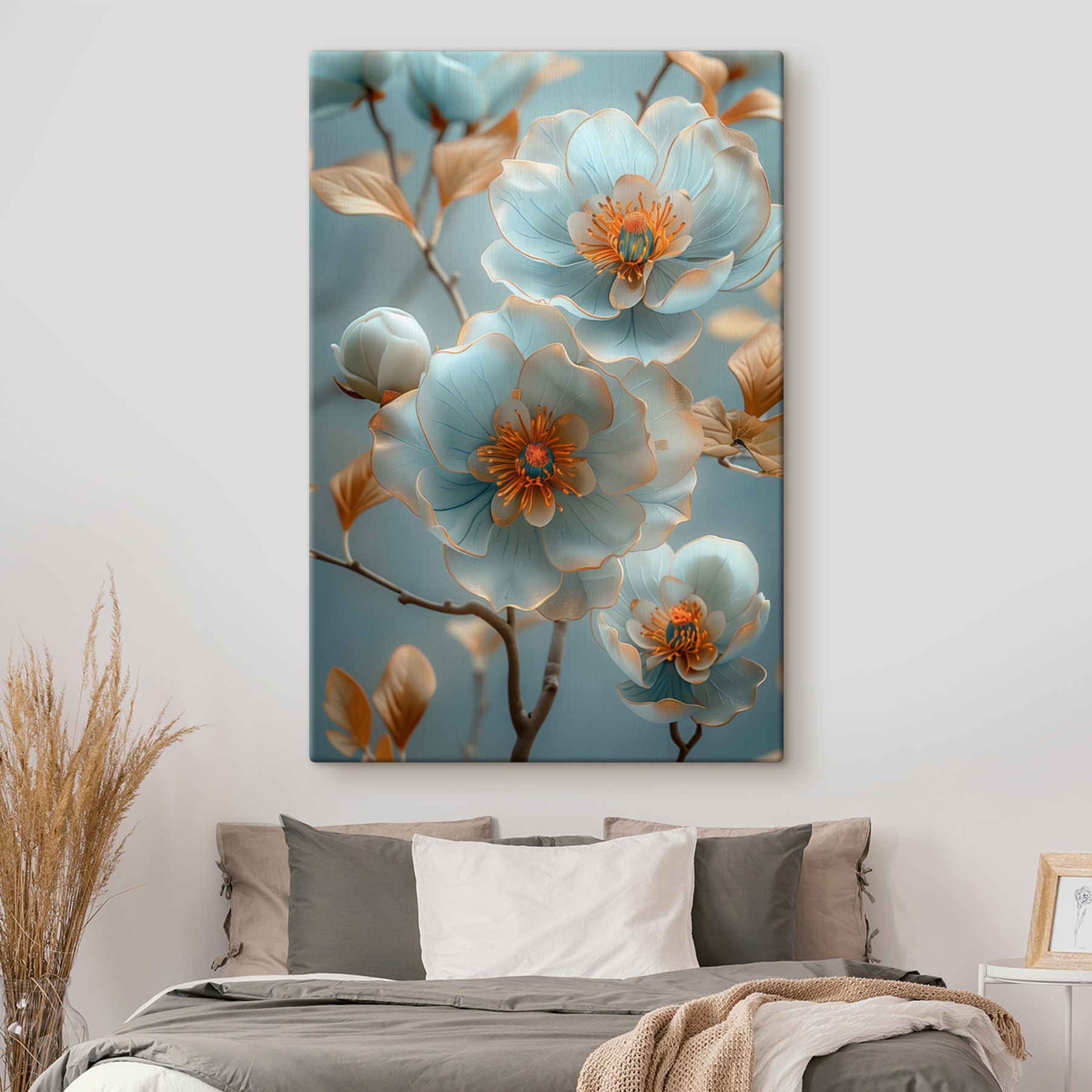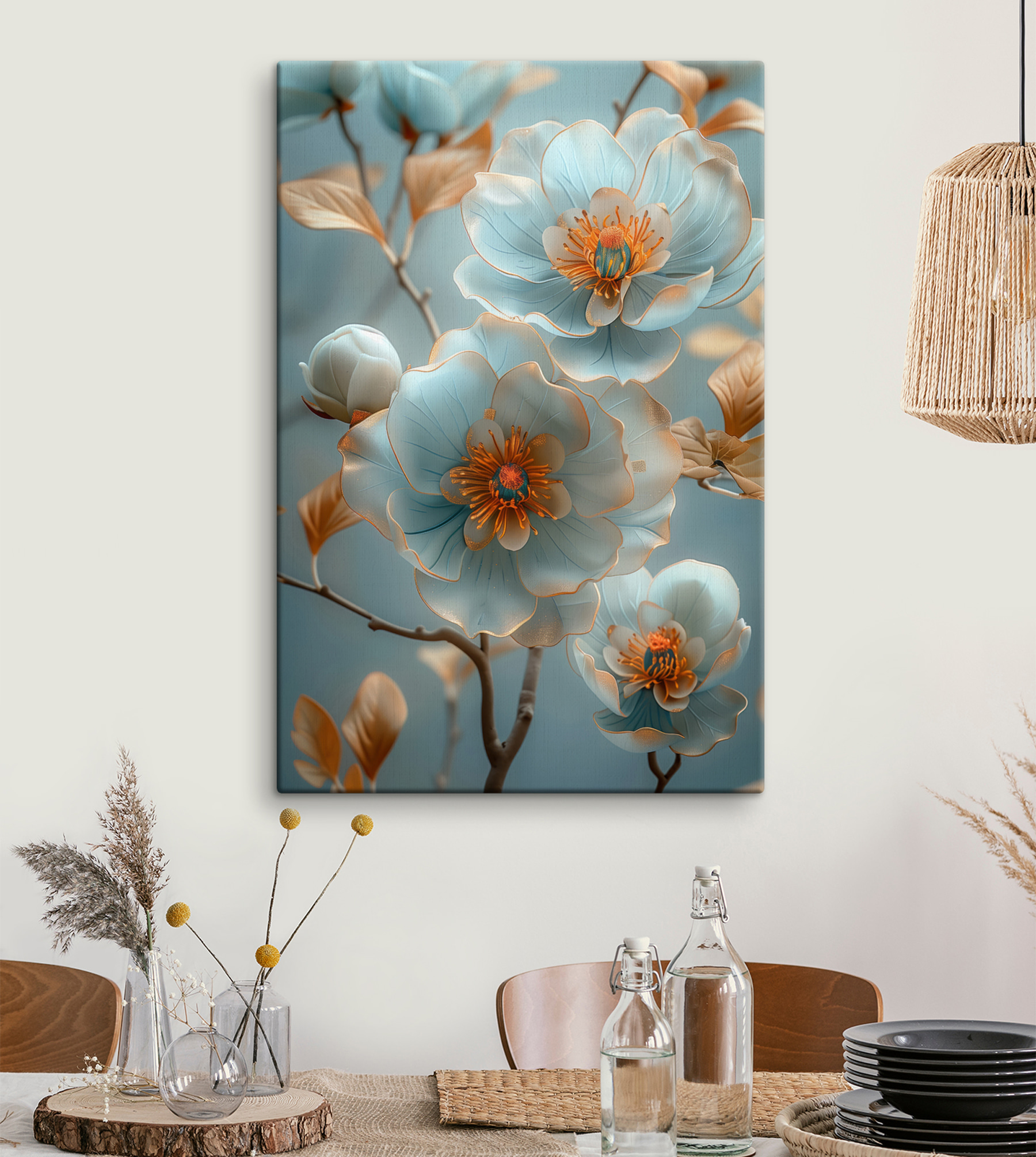 Odmień każdą przestrzeń dzięki obrazowi “Ethereal Blooms in Serene Tones”. Ten wydruk na płótnie jest jak powiew świeżego powietrza, uchwycając delikatną kwiatową magię, która jednocześnie uspokaja i podnosi na duchu. Wyobraź sobie, że wchodzisz do pokoju, w którym miękkie, kojące odcienie delikatnie Cię otulają, sprawiając, że każda wizyta jest jak mini-wakacje. Bujne kwiaty zdają się niemal kołysać, zachęcając do marzeń. Idealne do przytulnych zakątków, zachęcających korytarzy lub pustych ścian, które aż proszą się o odrobinę uroku. Wystarczy wyobrazić sobie ten mały uśmiech, gdy goście zauważą – to wystrój z odrobiną kaprysu!