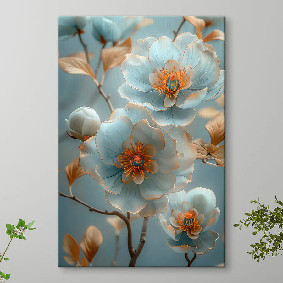 Odmień każdą przestrzeń dzięki obrazowi “Ethereal Blooms in Serene Tones”. Ten wydruk na płótnie jest jak powiew świeżego powietrza, uchwycając delikatną kwiatową magię, która jednocześnie uspokaja i podnosi na duchu. Wyobraź sobie, że wchodzisz do pokoju, w którym miękkie, kojące odcienie delikatnie Cię otulają, sprawiając, że każda wizyta jest jak mini-wakacje. Bujne kwiaty zdają się niemal kołysać, zachęcając do marzeń. Idealne do przytulnych zakątków, zachęcających korytarzy lub pustych ścian, które aż proszą się o odrobinę uroku. Wystarczy wyobrazić sobie ten mały uśmiech, gdy goście zauważą – to wystrój z odrobiną kaprysu!