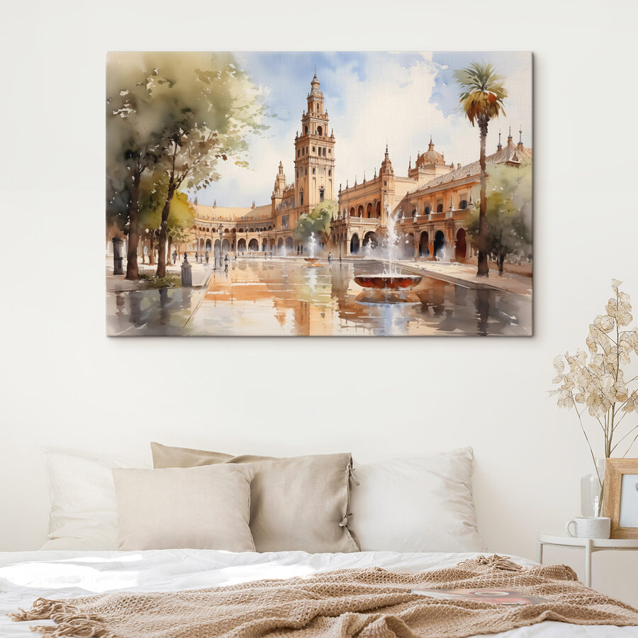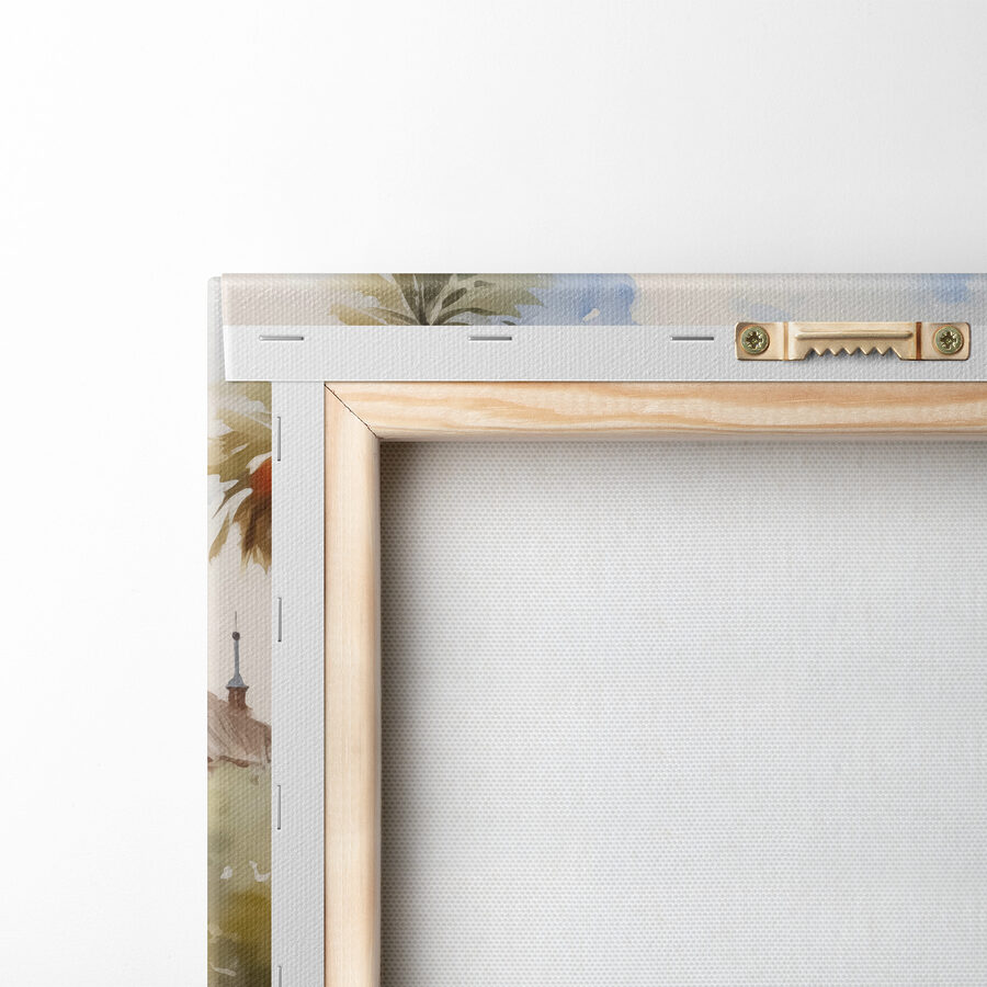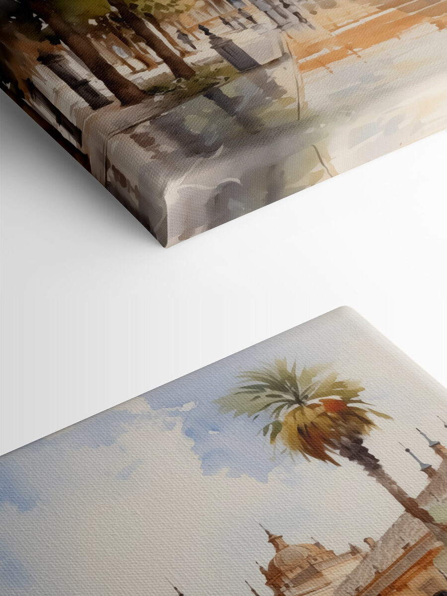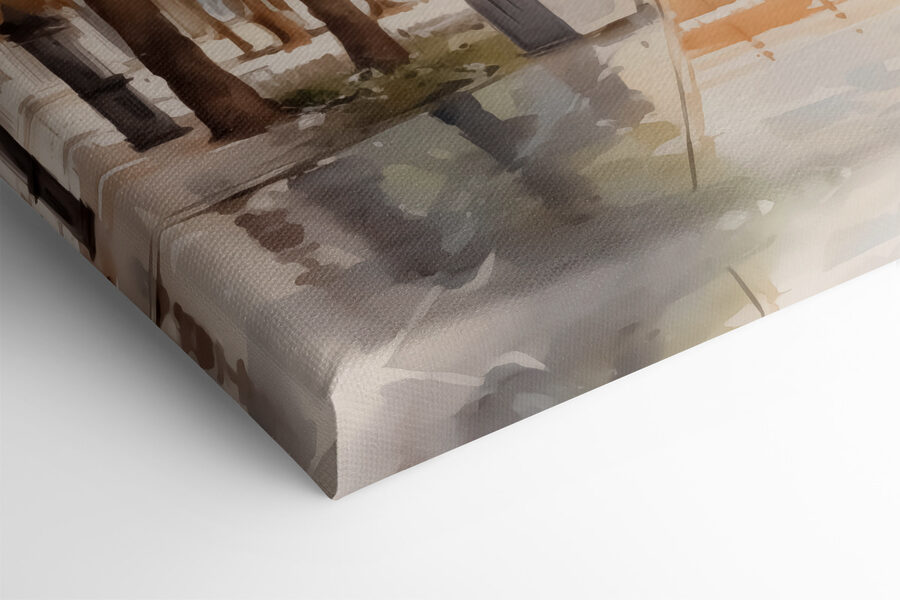 Wyobraź sobie popołudnie z magią w powietrzu – to płótno przenosi ją wprost do Twojej przestrzeni. Wydruk “Water Fountain in Front of a Building” przedstawia senną scenę, w której architektura wita się z naturą, spryskaną miękkimi odcieniami akwareli. Poczuj cichy plusk fontanny i delikatną bryzę szepczącą tajemnice. Idealny dla tych zakątków, które pragną szeptu elegancji. To jak mały kawałek spokoju przeniesiony do domu, bez kosztów przelotu. Miejskie krajobrazy potrafią skraść serca, prawda?