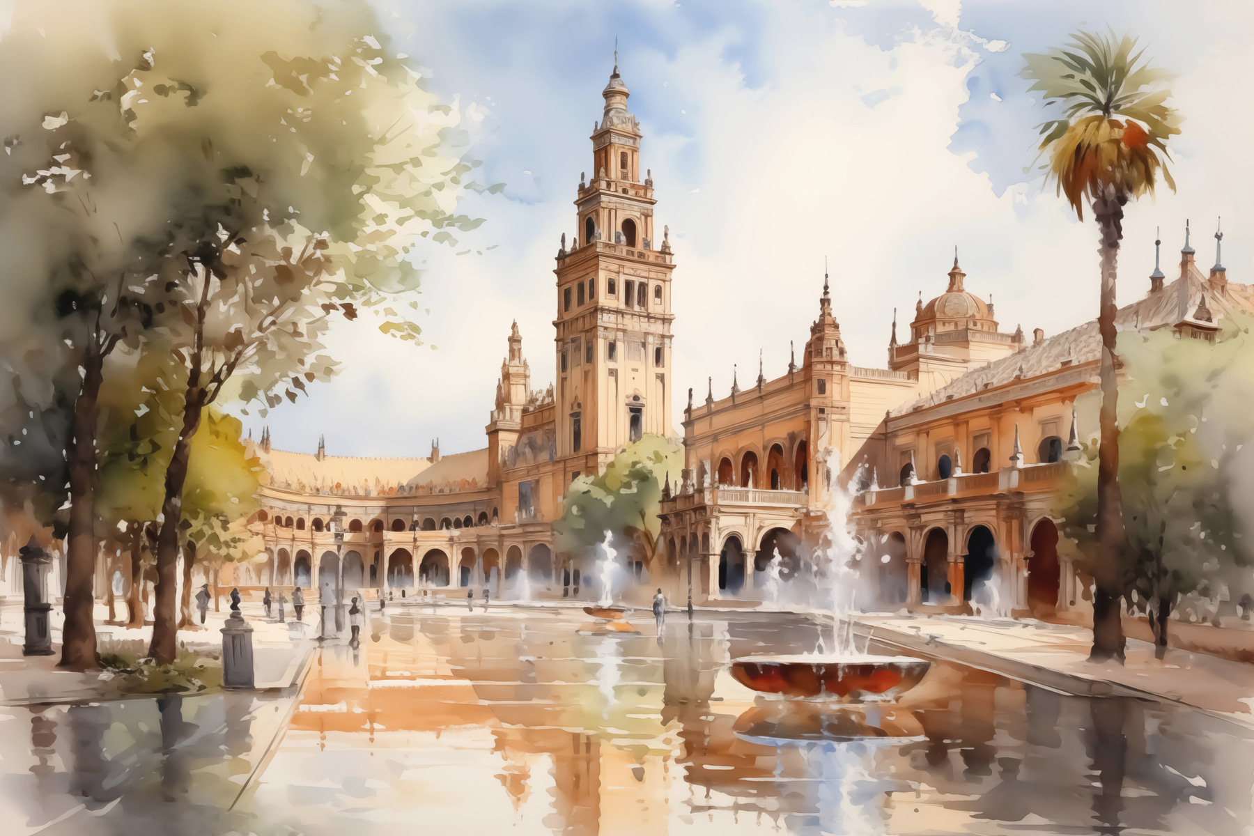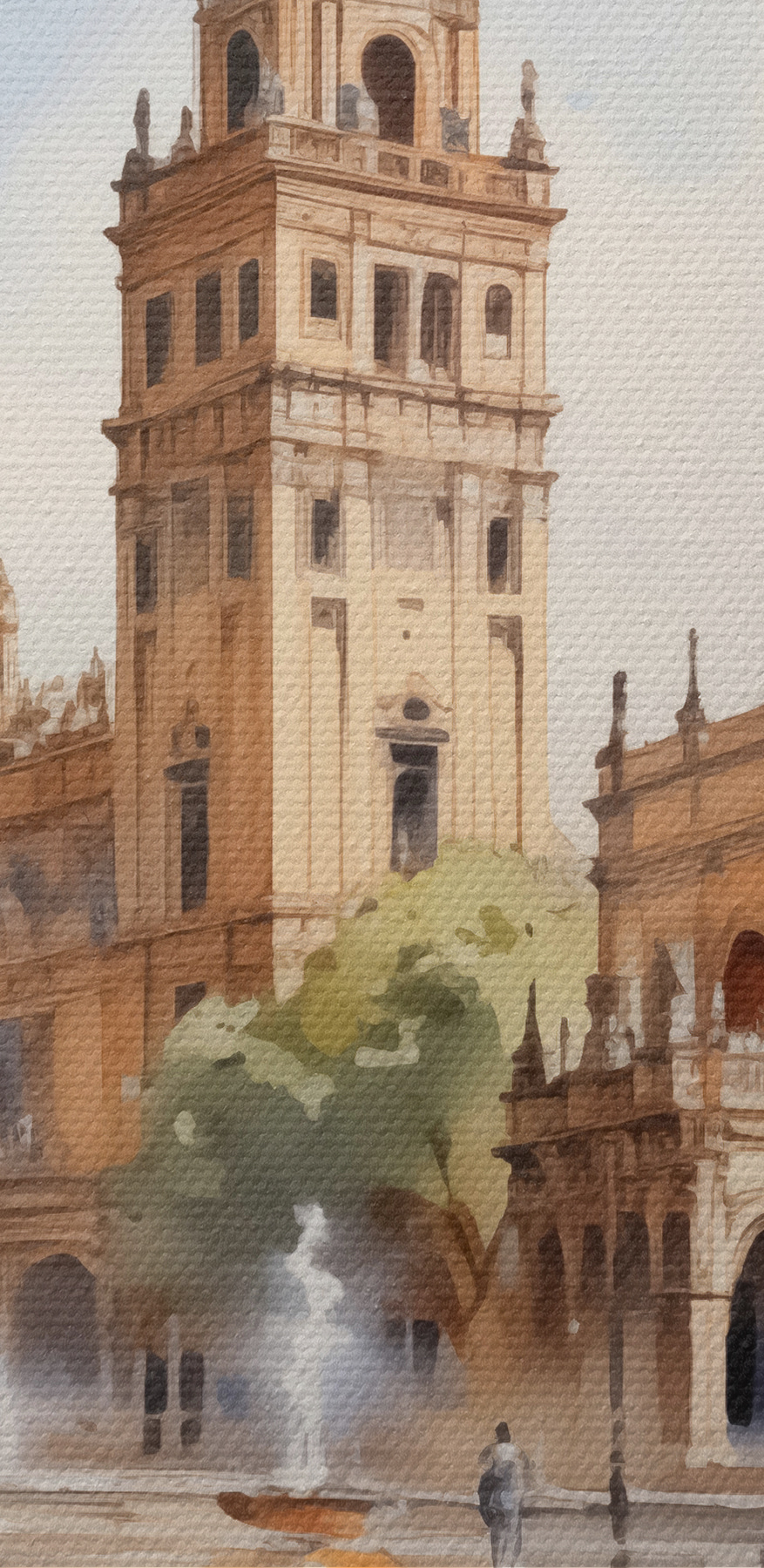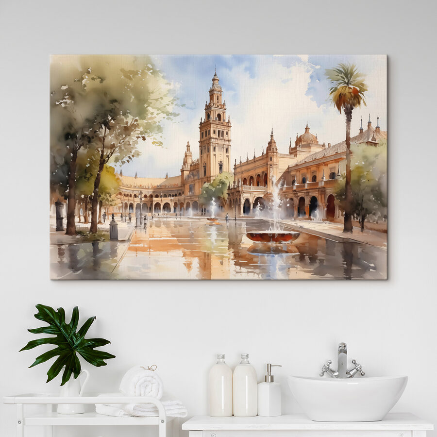 Wyobraź sobie popołudnie z magią w powietrzu – to płótno przenosi ją wprost do Twojej przestrzeni. Wydruk “Water Fountain in Front of a Building” przedstawia senną scenę, w której architektura wita się z naturą, spryskaną miękkimi odcieniami akwareli. Poczuj cichy plusk fontanny i delikatną bryzę szepczącą tajemnice. Idealny dla tych zakątków, które pragną szeptu elegancji. To jak mały kawałek spokoju przeniesiony do domu, bez kosztów przelotu. Miejskie krajobrazy potrafią skraść serca, prawda?