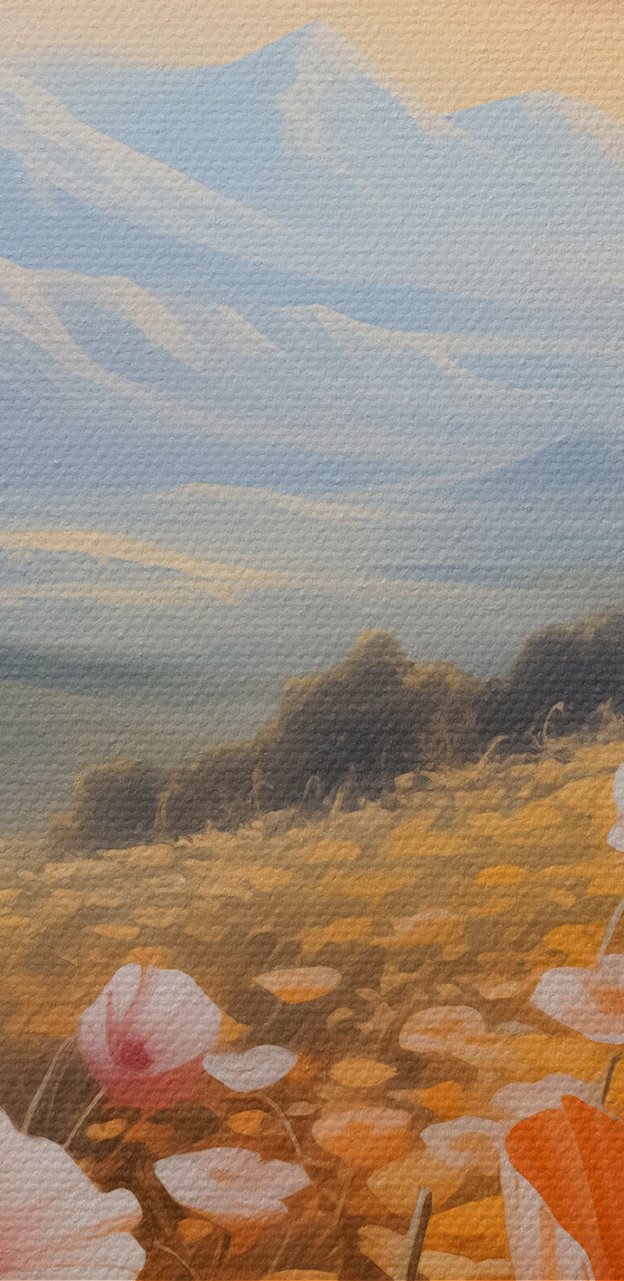 Wyobraź sobie, że budzisz się na polu żywych kwiatów delikatnie kołyszących się na wietrze. Ten druk na płótnie – marzycielski krajobraz kwitnących kolorów z majestatycznymi górami w tle – zaprasza mały kawałek raju do twojego pokoju. To jak wejście na słoneczną łąkę, gdzie czas się zatrzymuje i można niemal poczuć zapach świeżych kwiatów zmieszanych z nutami górskiego powietrza. Kojąca ucieczka na ścianie, idealna do wywołania uśmiechu w ponury dzień lub ożywionej rozmowy przy kawie. Szczęście kwitnie tutaj!