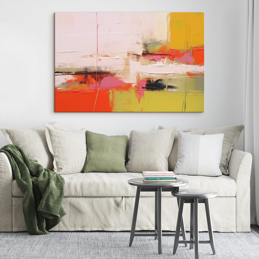 Wnieś odrobinę radości do każdej przestrzeni dzięki temu żywemu wydrukowi na płótnie, który tańczy kolorami. Wyobraź sobie, że wchodzisz do pokoju, w którym ściany wyglądają tak radośnie, jak letni piknik. Zabawna mieszanka czerwieni, różu, zieleni i żółci tej grafiki natychmiast poprawia nastrój, jak świeża bryza w słoneczny dzień. Idealny w chwilach, gdy potrzebujesz odrobiny inspiracji lub po prostu chcesz dodać odrobinę osobowości. Niezależnie od tego, czy wisi w przytulnym kąciku do czytania, czy w żywej galerii ściennej, ten obraz zachęca do zatrzymania się, uśmiechu i podzielenia się radością z przyjaciółmi. Wystarczy wyobrazić sobie popijanie kawy i chłonięcie tej feerii barw – trudno nie poczuć odrobiny iskry!