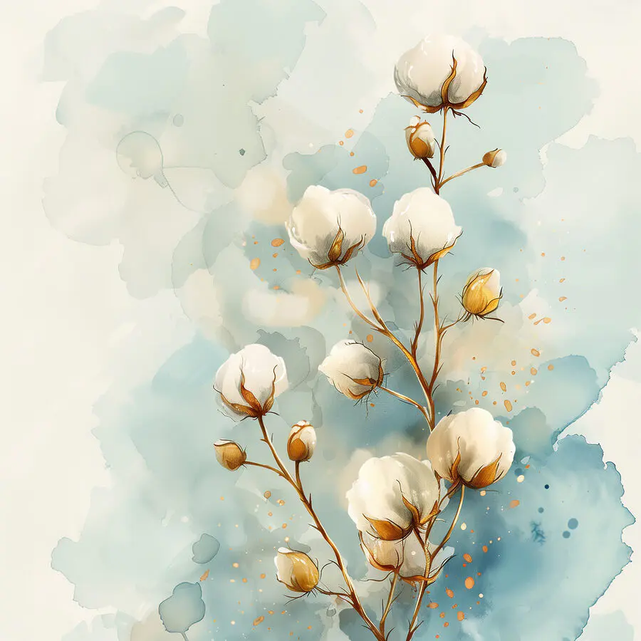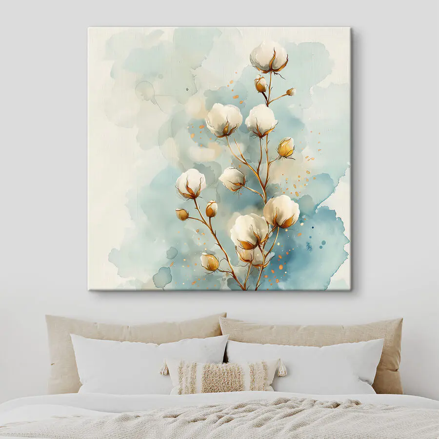 Wyobraź sobie to: leniwe popołudnie, światło słoneczne wpadające przez okno, a tam jest – akwarela bawełnianych kwiatów, tuż przy ścianie. To tak, jakby natura postanowiła zatańczyć z pędzlem malarza, cała spokojna i przytulna. Te miękkie, puszyste kwiaty? Totalny zen. Ma ten klimat, który szepcze: “Zrelaksuj się, weź oddech”. Idealny, aby każda przestrzeń poczuła się jak spokojna ucieczka. I hej, kto wiedział, że bawełna może być tak urocza? To nie tylko sztuka – to mały kawałek spokoju wiszący w twoim pokoju.