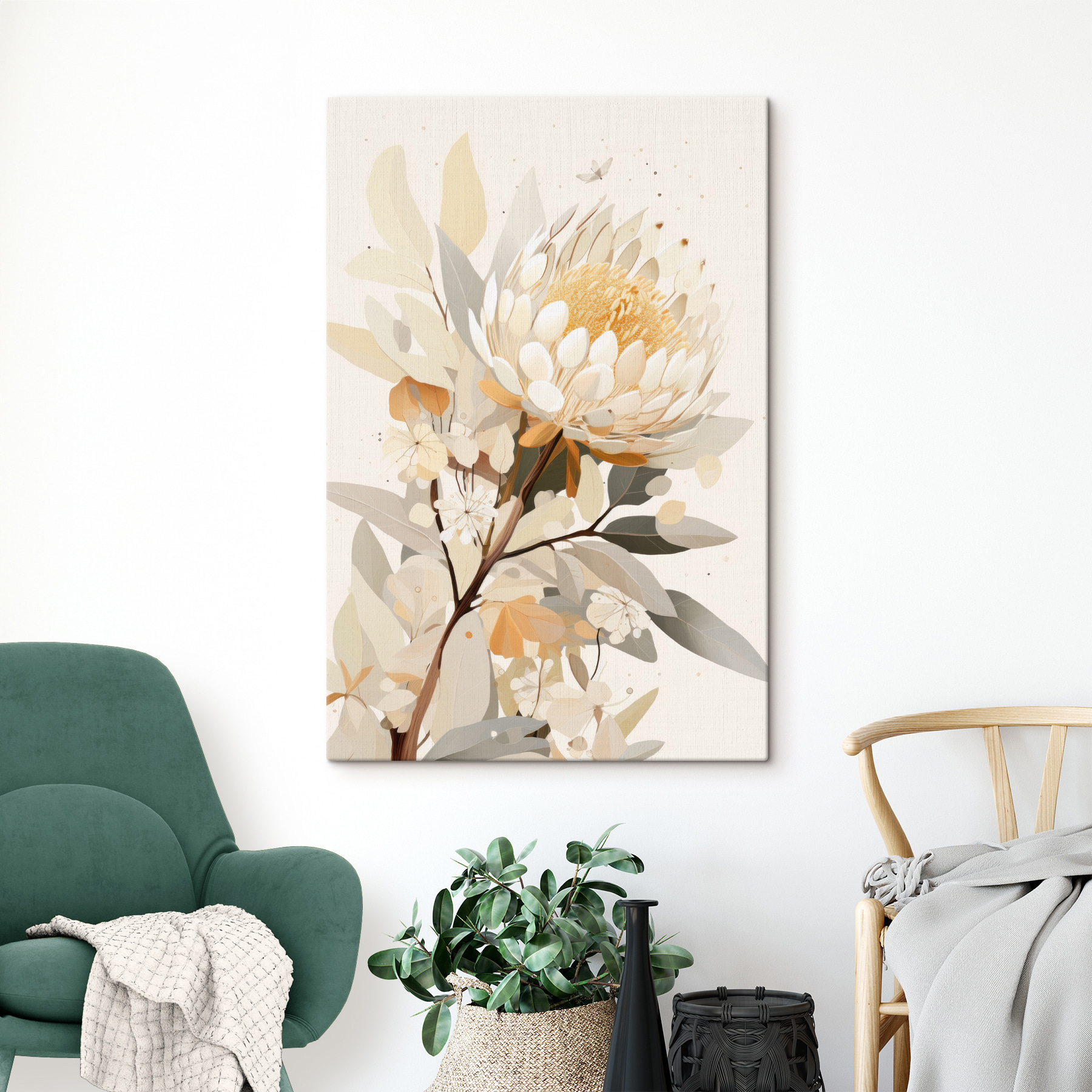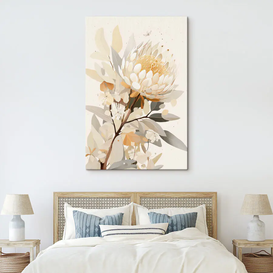 Wnieś odrobinę natury do wnętrza dzięki temu wspaniałemu drukowi na płótnie przedstawiającemu marzycielski biały kwiat i jego słoneczny żółty środek. To jak powiew świeżego powietrza dla każdego pomieszczenia, natychmiastowo podnoszący nastrój i utrzymujący chłód. Wyobraź sobie popijanie herbaty w przytulnym kącie, w otoczeniu delikatnych odcieni, które koją duszę i wywołują radość. Niezależnie od tego, czy zdobi ścianę w salonie, czy dodaje charakteru korytarzowi, ten element z pewnością przyciągnie wzrok i rozgrzeje serca. Kto by pomyślał, że kwiat może wnieść tyle życia do przestrzeni? Idealny dla miłośników natury lub każdego, kto chce rozjaśnić swój dom.