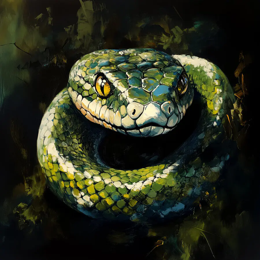 Poznaj swoją nową ulubioną grafikę ścienną: “Zielony wąż z żółtymi oczami”. Ten wydruk na płótnie może być początkiem rozmowy, której nie wiedziałeś, że potrzebujesz. Te przenikliwe oczy praktycznie podążają za tobą po pokoju, prawda? To tak, jakby wąż szeptał sekrety z dżungli, gdy pijesz poranną kawę. Idealny dla miłośników zwierząt lub tych, którzy po prostu chcą odrobiny nieokiełznanej dzikości w swoim salonie. Wyobraź sobie to odważne piękno nad kanapą, dodające odrobinę intrygi – dzikie, tajemnicze i całkowicie hipnotyzujące.