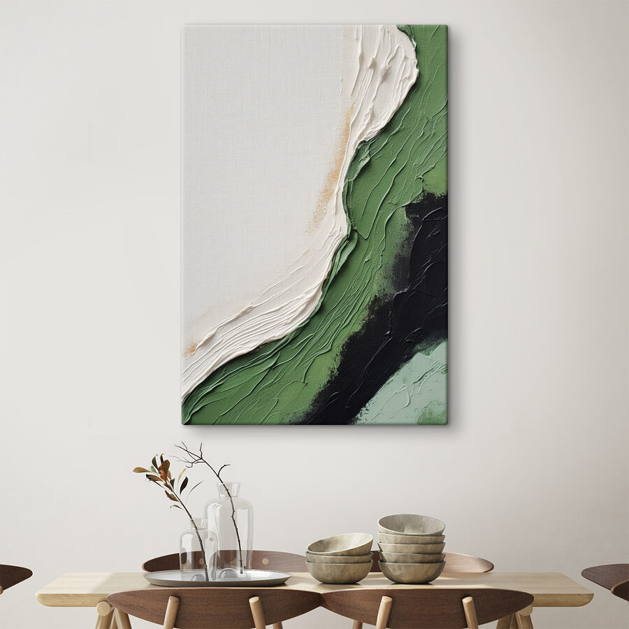 Wyobraź sobie, że wieszasz “Emerald Waves Meet Ivory Shores” w swoim salonie – to coś więcej niż tylko dzieło sztuki; to jak mini-wakacje. Te bogate zielenie i kremowe biele? Całkowity nastrój zen. Niemal szepcze: “Zrelaksuj się… jesteś na plaży”, bez piasku między palcami. Idealny do przestrzeni, które potrzebują odrobiny spokoju lub koloru. Wyobraź sobie: ktoś wchodzi i mówi: “Wow, skąd to masz?”. Natychmiastowy początek rozmowy. Przytulna ucieczka na wyciągnięcie ręki!