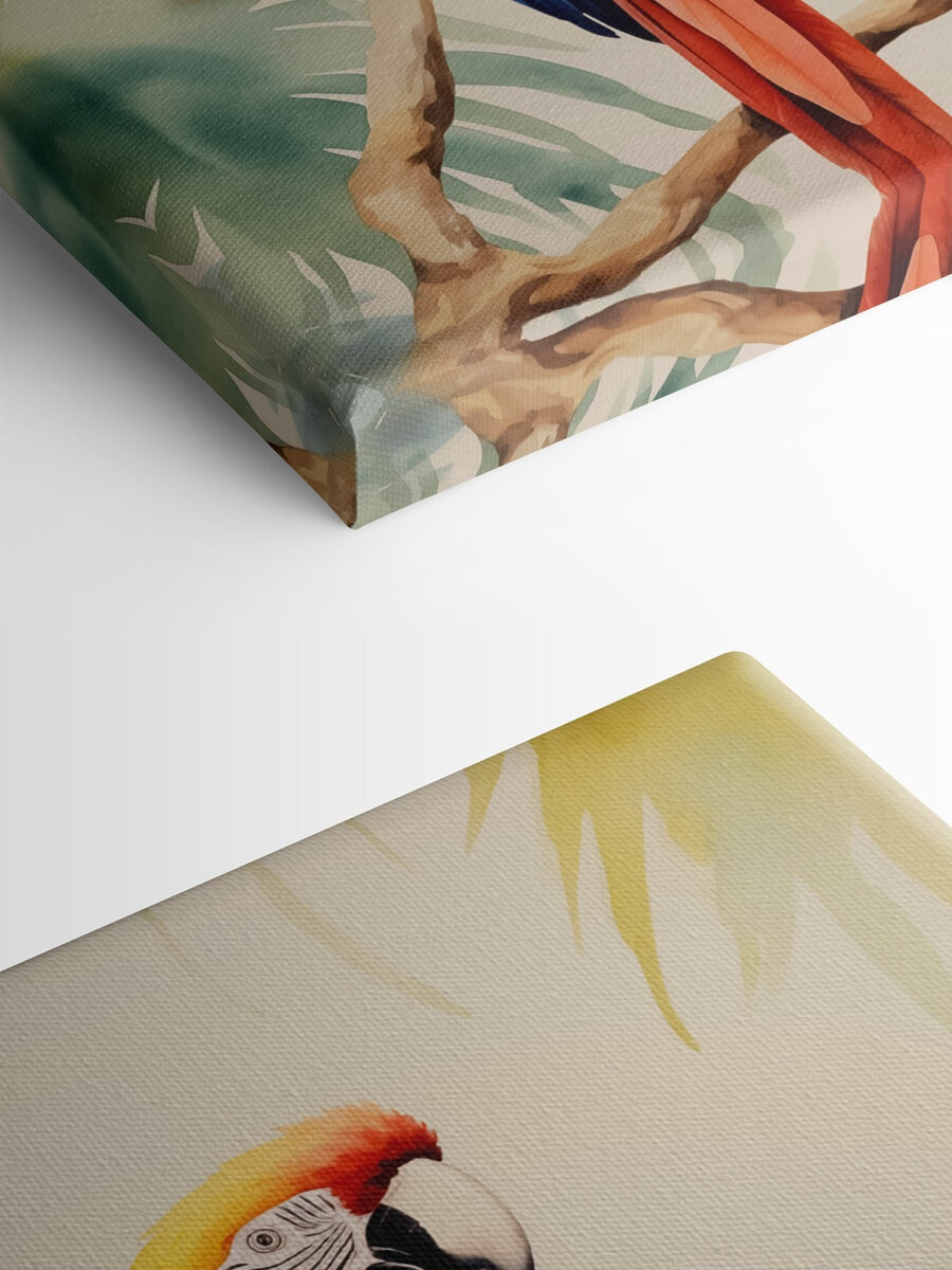 Wyobraź sobie, że wchodzisz do swojego salonu i witasz się z wybuchem żywych piór – to kolorowe płótno z ptakami jest jak mini tropikalny wypad prosto na twoją ścianę. To idealne połączenie żywych odcieni i delikatnej akwarelowej tekstury. Dodaje odrobinę kaprysu i uroku natury do każdej przestrzeni. Wyobraź sobie siebie popijającego poranną kawę, czując radosną aurę, którą emanuje. Ten obraz nie tylko zdobi ścianę, ale także śpiewa do duszy.