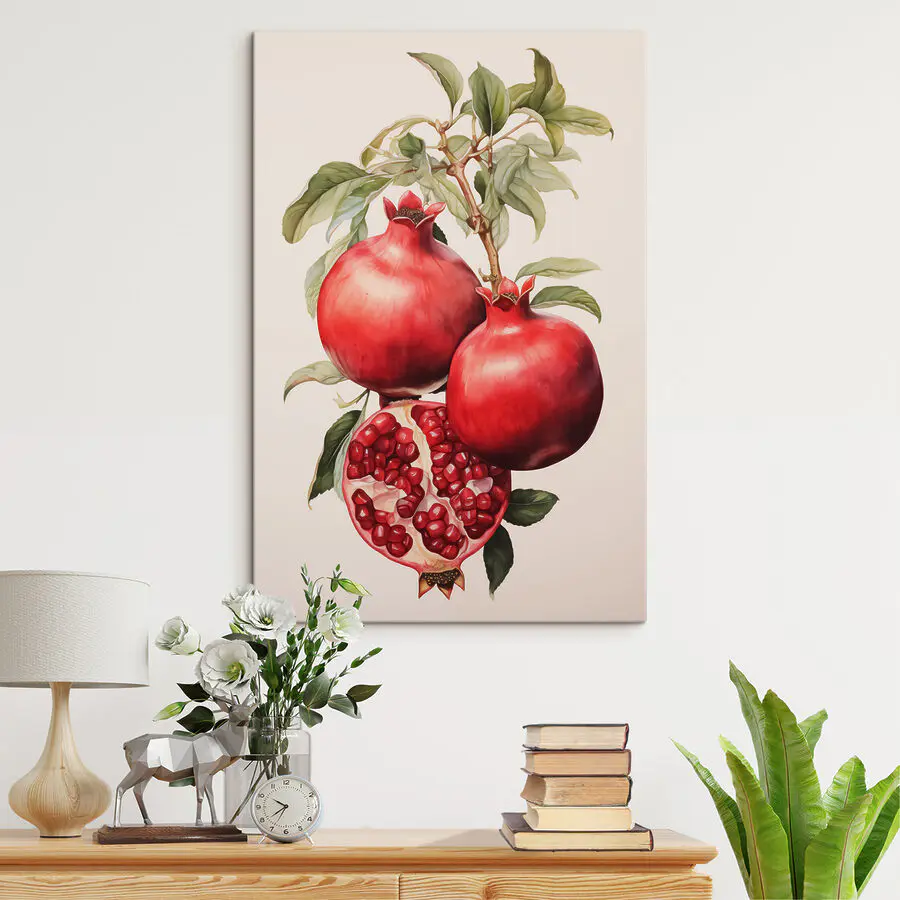 Rozjaśnij swoją przestrzeń dzięki temu pięknemu drukowi na płótnie przedstawiającemu granaty, soczyste klejnoty natury. Wyobraź sobie żywe czerwienie na ścianie, które natychmiast ożywią każde pomieszczenie. To tak, jakby mieć kawałek ogrodu w swoim wnętrzu! Ta grafika to nie tylko dekoracja; wnosi świeżą energię, która może pobudzić rozmowę przy lampce wina lub przytulne pogawędki przy kawie. Idealny do kuchni lub jadalni, jest ucztą dla oczu, która doskonale łączy się z tymi pysznymi chwilami w życiu – tylko nie proś go o trzymanie prawdziwych owoców!