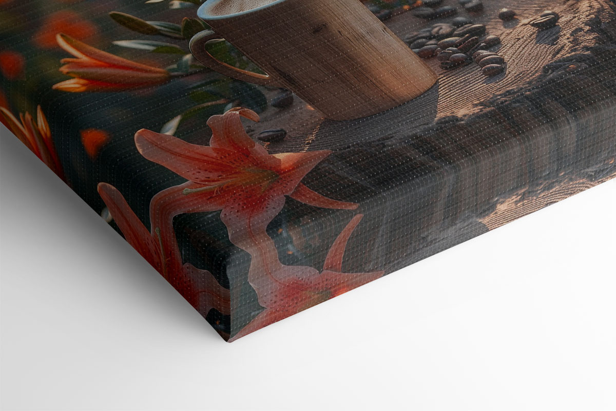 Wyobraź to sobie: przytulny kącik, poranna kawa delikatnie parująca i płótno, które przenosi plener do środka. “Filiżanka kawy na pniu z pomarańczowymi kwiatami” to coś więcej niż sztuka – to zaproszenie. Te żywe pomarańczowe kwiaty praktycznie mrugają do ciebie, podczas gdy rustykalny pień szepcze tajemnice lasu. Jest idealny do tego miejsca w domu, które potrzebuje odrobiny kaprysu i ciepła. Jak poranny uścisk, ten element przypomina, że proste radości, takie jak kawa i kwiaty, są wszędzie wokół.