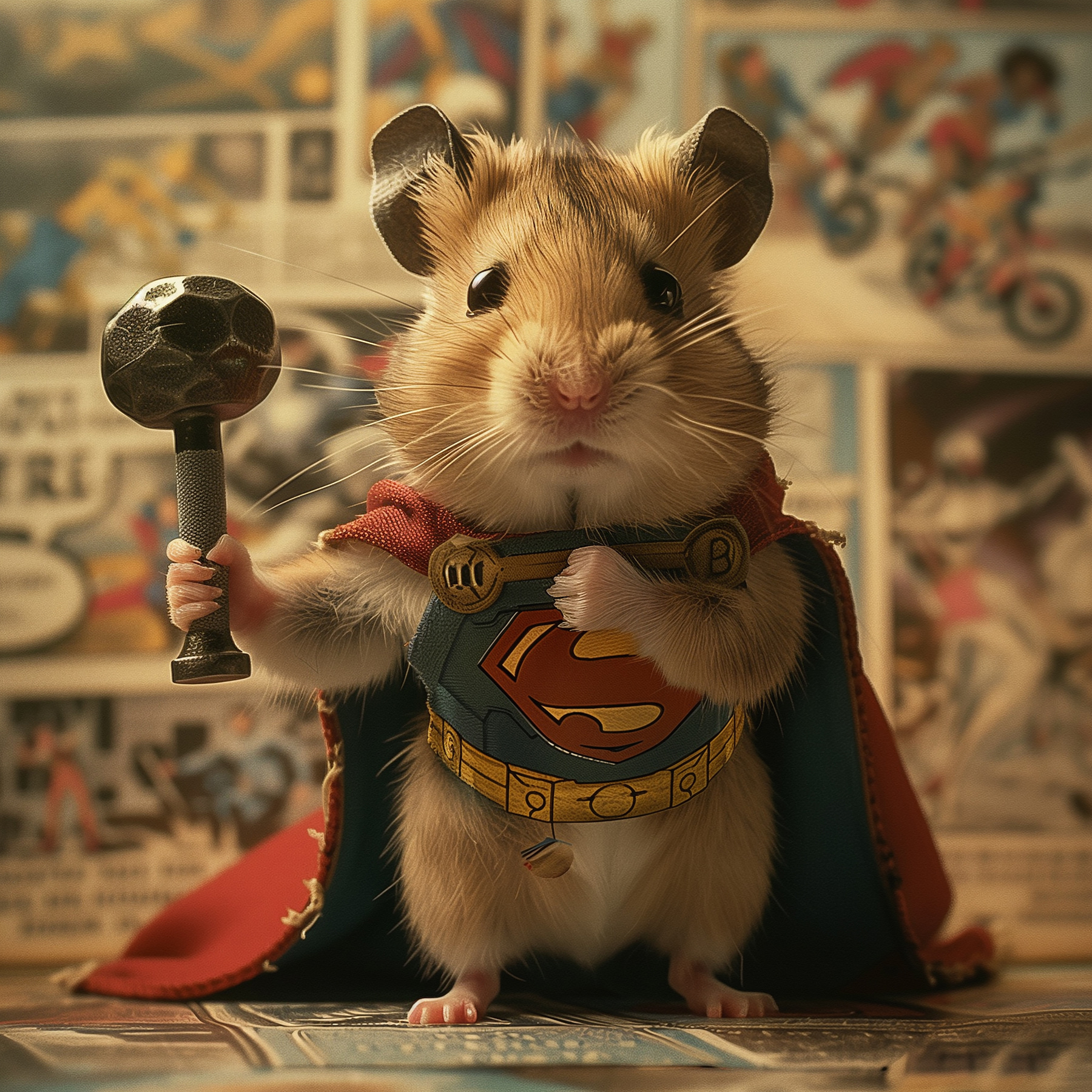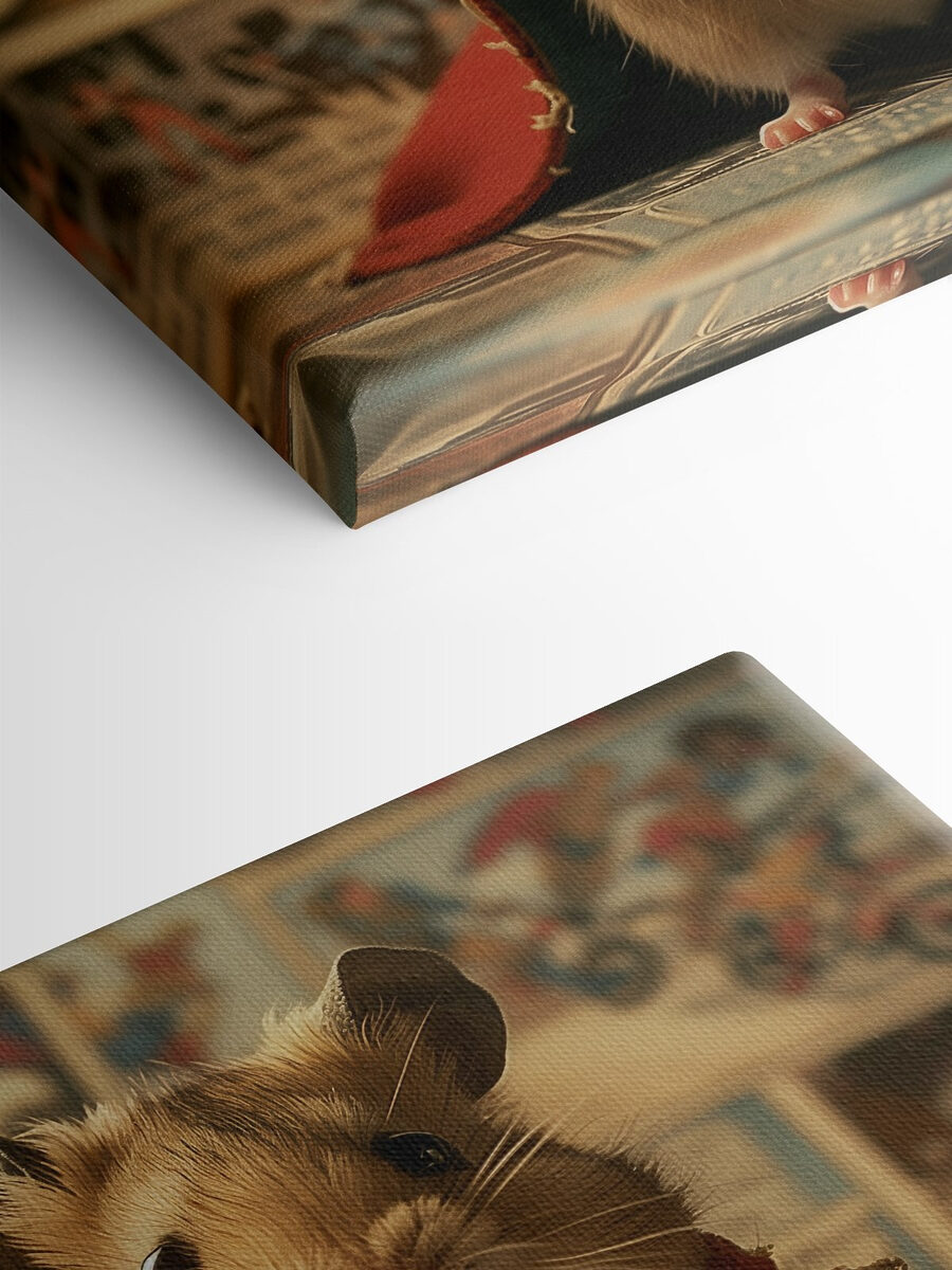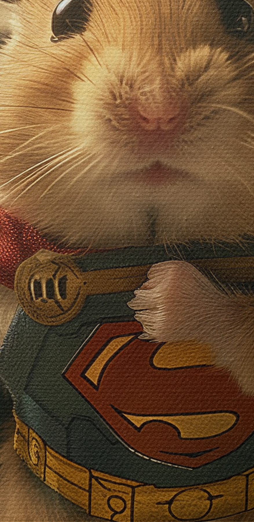 Zastanawiałeś się kiedyś, jak wygląda mały bohater? Poznaj ten wydruk na płótnie przedstawiający uroczego chomika w pelerynie i z młotkiem. To rodzaj sztuki, która sprawia, że uśmiechasz się za każdym razem, gdy na nią spojrzysz. Wyobraź go sobie na swojej ścianie, dodając odrobinę kaprysu do swojego dnia. Idealny dla każdego miłośnika zwierząt lub fana superbohaterów. Ten maluch może zainspirować twojego wewnętrznego bohatera, a przynajmniej wywołać uśmiech na twarzy. Jest to rodzaj zabawnego i dziwacznego wystroju, który sprawia, że dom staje się domem. Przyjemny, nieoczekiwany – jak wybuch radości!