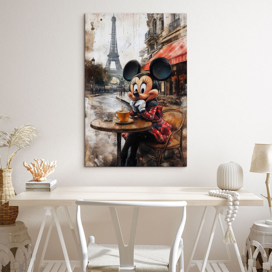 Wyobraź to sobie: urocze, małe miejsce w Twoim domu, które jest wypełnione ciepłem i kaprysem. Ten wydruk na płótnie przedstawia uroczą postać z kreskówki, która delektuje się filiżanką herbaty w przytulnej kawiarni. To idealne połączenie spokoju i odrobiny koloru, które rozjaśni każde pomieszczenie. Idealny dla tych, którzy cenią sobie drobiazgi, takie jak zaparzona filiżanka i malownicze spacery. Sprawia, że czujesz się, jakbyś właśnie miał zanurzyć się w bajkowej przygodzie, prawda? Rozpoczynający rozmowę, poprawiający nastrój – prawdziwe dzieło sztuki.
