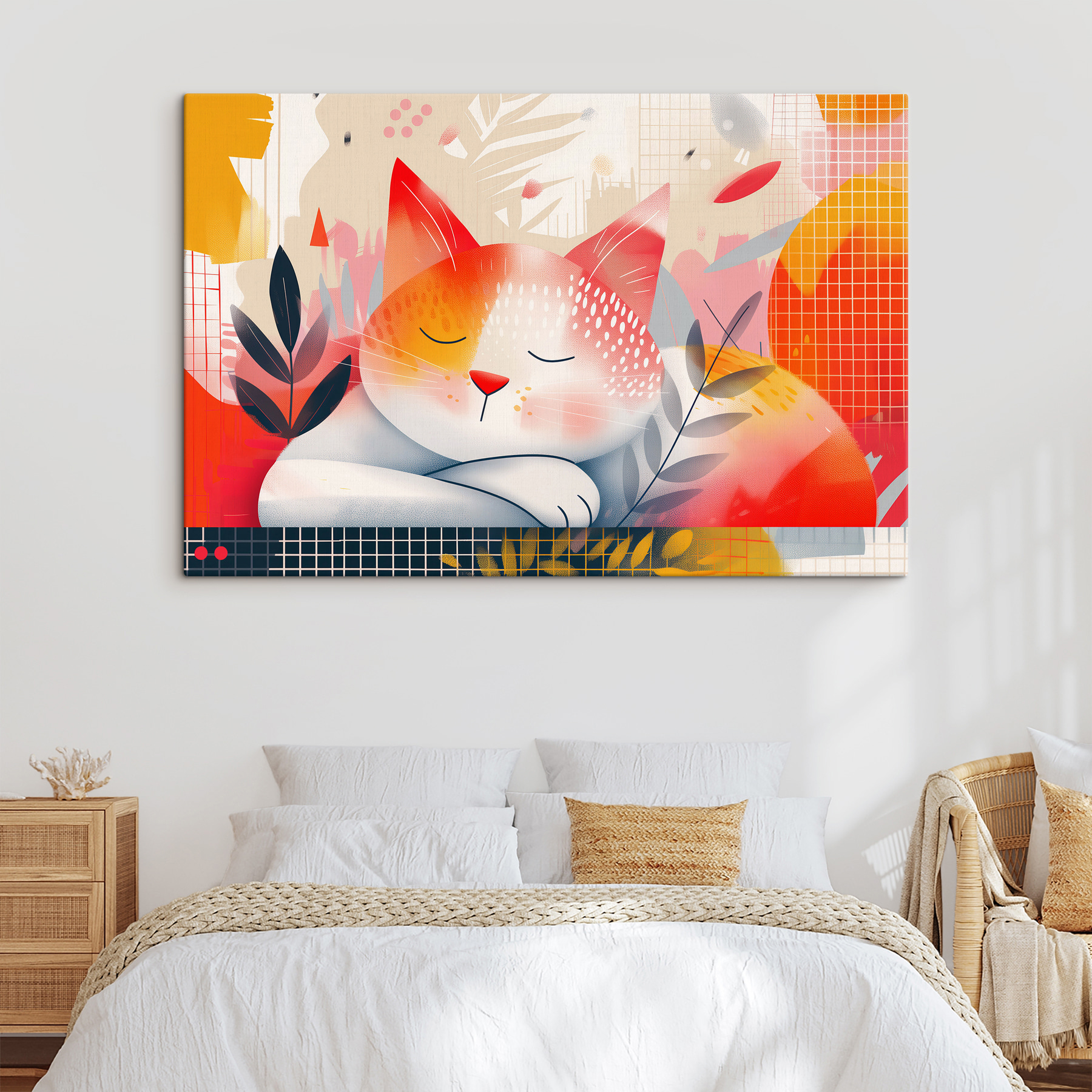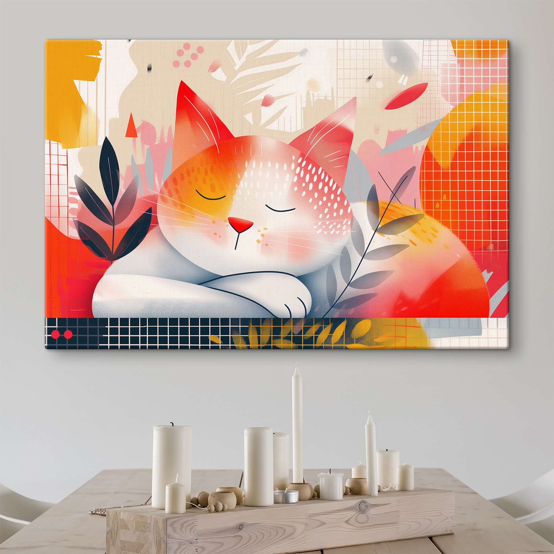 Pomarz o tym obrazie na płótnie “Marzycielska drzemka kota w jesiennych kolorach”. To jak idealna przytulanka z mruczącym kotem w rześki jesienny dzień. Ciepłe, żywe odcienie tańczą po płótnie, prawie jak szelest liści. Wnosi przytulny, kapryśny klimat do każdej przestrzeni – idealny dla tych, którzy uwielbiają odrobinę natury z zabawnym akcentem. Wyobraź sobie, że siedzisz, popijając gorące kakao, podczas gdy ta urocza scena zaprasza spokój i zachwyt do Twojego pokoju. To mała historia o drzemce opakowana w sztukę!