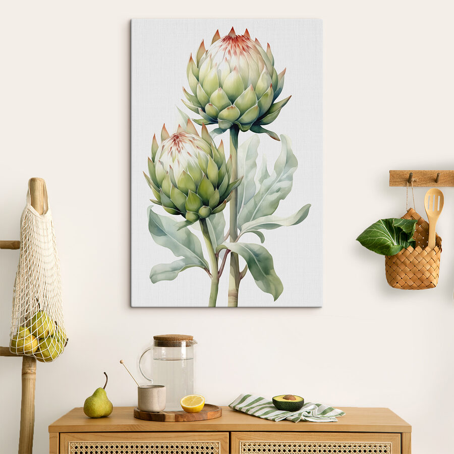 Poznaj “Obraz Twin Artichokes Basking in Harmony” – zachwycający wybuch natury, który tańczy w twoim sercu. Wyobraź sobie te dwa dziwaczne karczochy prowadzące przytulną rozmowę w akwareli! Ten obraz, z jego miękką zielenią i szeptami ciepła, dodaje odrobinę kaprysu do każdej przestrzeni. Wyobraź go sobie w swojej kuchni, wywołując radość i być może ochotę na coś pysznego. Jest jak łagodny przyjaciel, bez wysiłku podnoszący pomieszczenie urokiem natury. Idealny dla tych, którzy kochają odrobinę osobowości i ukłon w stronę nieoczekiwanego.