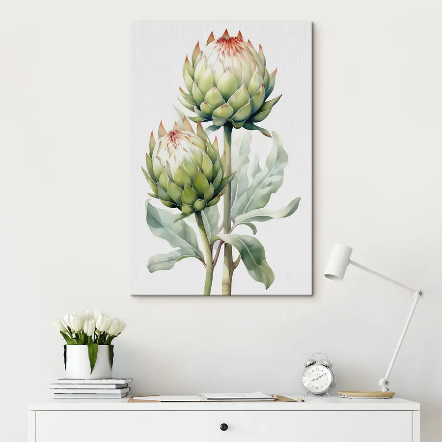 Poznaj “Obraz Twin Artichokes Basking in Harmony” – zachwycający wybuch natury, który tańczy w twoim sercu. Wyobraź sobie te dwa dziwaczne karczochy prowadzące przytulną rozmowę w akwareli! Ten obraz, z jego miękką zielenią i szeptami ciepła, dodaje odrobinę kaprysu do każdej przestrzeni. Wyobraź go sobie w swojej kuchni, wywołując radość i być może ochotę na coś pysznego. Jest jak łagodny przyjaciel, bez wysiłku podnoszący pomieszczenie urokiem natury. Idealny dla tych, którzy kochają odrobinę osobowości i ukłon w stronę nieoczekiwanego.