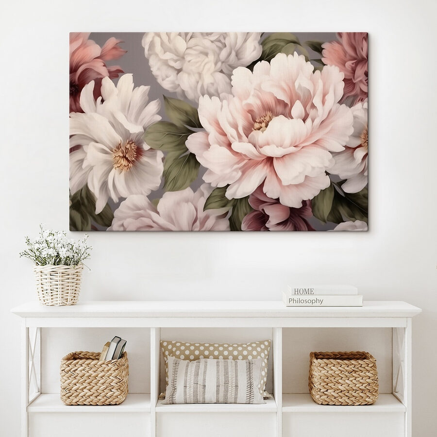 “Bloom of Elegance” to nie tylko wydruk na płótnie – to jak powiew świeżego powietrza na ścianach. Wyobraź sobie, że wchodzisz do pokoju i czujesz się, jakbyś natknął się na tajemniczy ogród. Miękkie płatki zapraszają do środka, a ich delikatne odcienie szepczą historie o cichych porankach i świeżym początku. To tak, jakby mieć odrobinę natury na wyciągnięcie ręki, bez konieczności podlewania! Idealny dla każdego, kto docenia spokój kwiatów, ale, bądźmy szczerzy, nie ma zielonego kciuka, aby utrzymać je przy życiu. Ta grafika wnosi odrobinę wdzięku i kaprysu do każdej przestrzeni – to melodia natury uchwycona na płótnie.