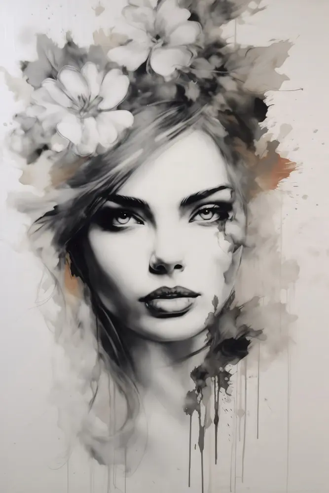 Wyobraź to sobie: uderzający element, który szepcze elegancję z nutą tajemniczości. Poznaj płótno przedstawiające kobietę ukoronowaną kwiatami, a wszystko to w delikatnych czarno-białych odcieniach. To tak, jakby patrzyła prosto na ciebie, wciągając cię w swój spokojny, ale intrygujący świat. Idealny dla tych, którzy uwielbiają historie i emocje wplecione w sztukę. Wyobraź go sobie na ścianie – może ożywi przytulny kącik do czytania lub doda uroku Twojemu salonowi. To początek rozmowy, kreator nastroju. Absolutnie ponadczasowy, z odrobiną kaprysu.