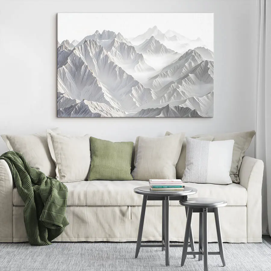 Wyobraź sobie, że stoisz przy oknie z tym oszałamiającym płótnem i niemal słyszysz szept wiatru nad tymi majestatycznymi, ośnieżonymi szczytami. Wydruk “Snowy Mountain Range with Clouds” oddaje całe spokojne piękno mroźnej dziczy – bez odmrożeń. Idealny dla każdego, kto marzy o epickich przygodach, ale docenia przytulną kanapę. Hipnotyzująca mieszanka minimalistycznej i inspirowanej naturą sztuki wniesie powiew świeżego górskiego powietrza do Twojej przestrzeni. Świetnie nadaje się również do rozpoczęcia rozmowy – idealna na popołudniowe marzenia lub przytulne chwile o zmierzchu!