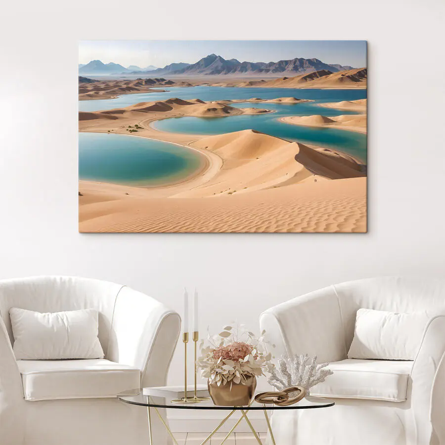 Wyobraź sobie świat, w którym pustynia całuje wodę, a góry zakradają się w tle, aby zerknąć – ten wydruk na płótnie przenosi to marzenie prosto na twoją ścianę. Poczuj ciepłe piaski pod stopami, usłysz delikatne uderzenia fal o wydmy i pozwól, aby ten spokojny widok Cię porwał. To jak posiadanie tajemnicy i spokoju natury w jednym doskonałym dziele sztuki. Umieść go w swoim salonie i oglądaj – przyjaciele mogą nie wyjść! Oaza we własnym domu. Kto by pomyślał?