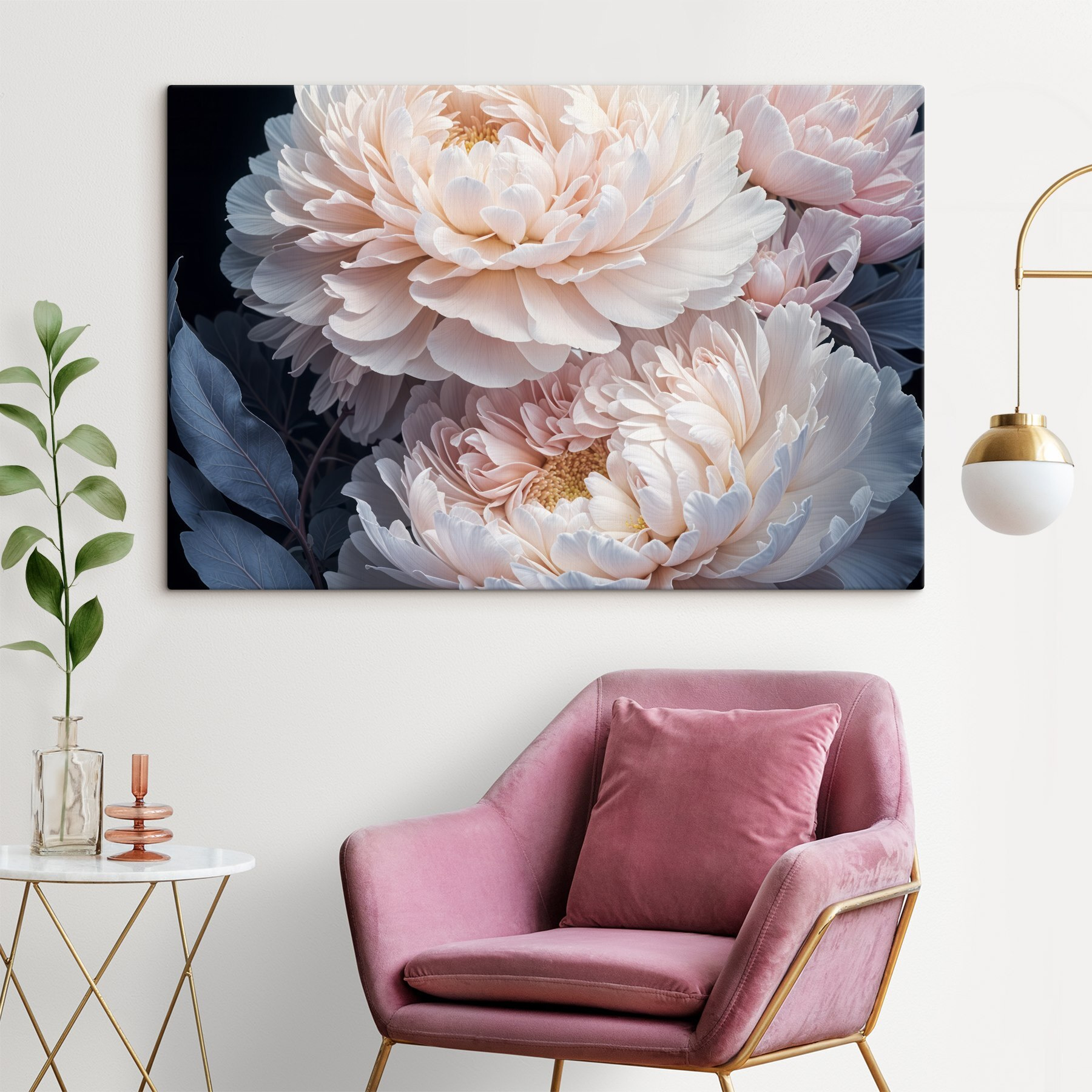 Czy kiedykolwiek marzyłeś o spacerze po ogrodzie, w którym płatki szepczą tajemnice spokoju? Obraz “Pale Petals in Soft Embrace” doskonale oddaje ten błogi moment. Wyobraź sobie, że to płótno wita cię każdego dnia, rozjaśniając twoją przestrzeń delikatnymi odcieniami kremu i różu – jest jak ciepły, kwiatowy uścisk. Idealny dla miłośników kwiatów lub każdego, kto pragnie odrobiny natury we wnętrzu. Co więcej, pasuje niemal wszędzie – do salonu, sypialni lub małego kącika do czytania. Rozkoszna ucieczka od codziennej harówki, bezpośrednio na ścianie.