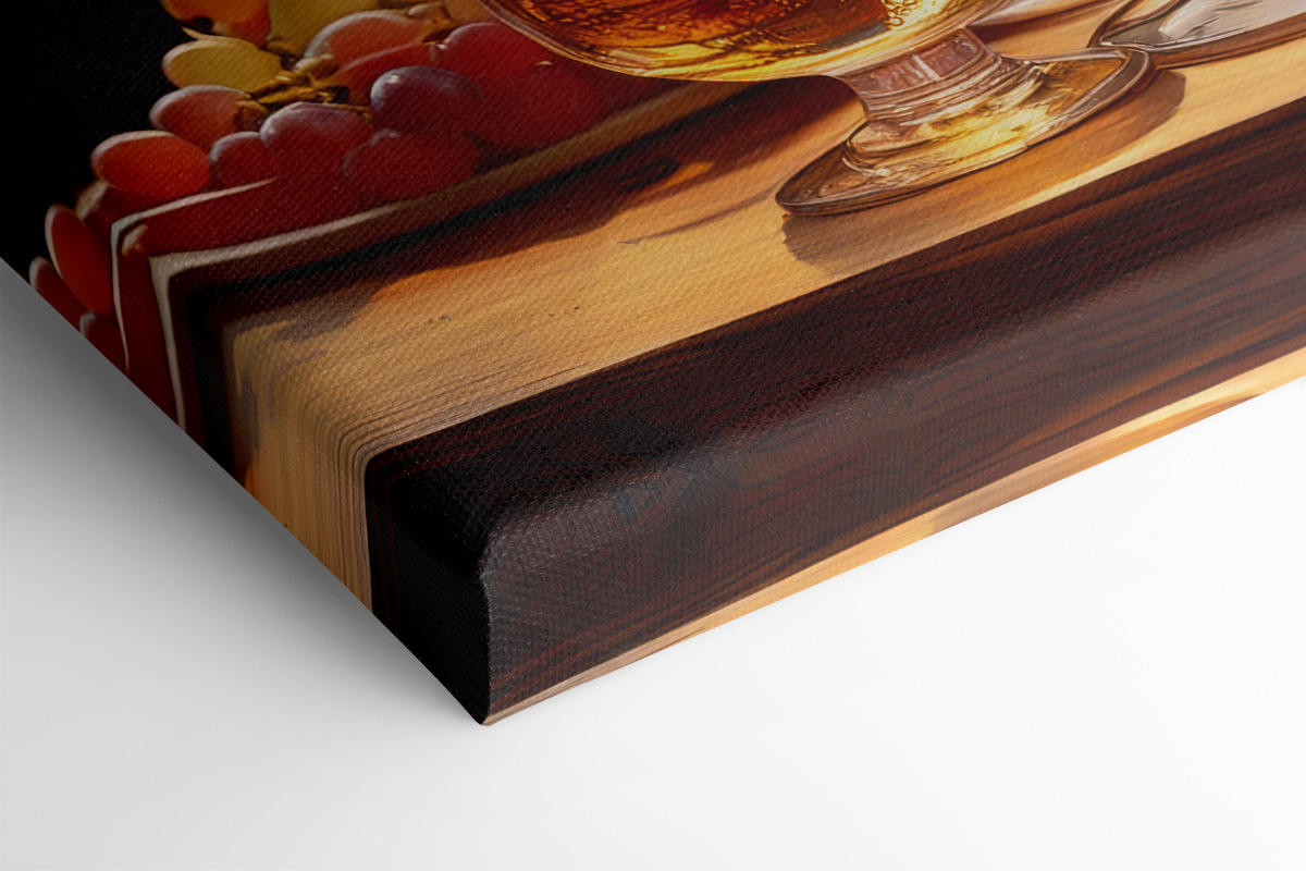 Odmień każdą przestrzeń dzięki temu zachęcającemu drukowi na płótnie przedstawiającemu wesołą grupę kieliszków do wina w połączeniu z żywymi winogronami. Wyobraź sobie ten obraz wiszący w przytulnej jadalni lub domowym barze – od razu zachęca do ciepła i śmiechu. Wyobraź sobie spotkanie z przyjaciółmi na niezobowiązujący wieczór, wszyscy chichoczą nad historiami, popijając swoje ulubione drinki. Bogata kolorystyka i delikatne światło sprawiają, że niemal słychać brzęk kieliszków i czuć słodki aromat winogron. Idealna dla miłośników wina lub każdego, kto ceni wyluzowaną atmosferę, ta grafika dodaje uroku każdej ścianie. Na zdrowie wspaniałemu wystrojowi!