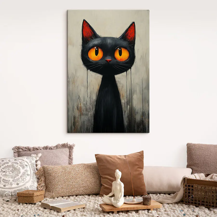 Chcesz dodać szczyptę tajemniczości (i może odrobinę kaprysu) do swojej przestrzeni? Poznaj obraz na płótnie “Czarny kot z pomarańczowymi oczami”! Te ogniste oczy są jak małe reflektory, rzucające zaciekawione spojrzenie prosto w twoją duszę – a może po prostu w poranną kawę. Idealny dla każdego miłośnika kotów lub kogoś, kto ma obsesję na punkcie Halloween przez cały rok. Wyobraź sobie tego eleganckiego kota witającego Cię każdego dnia – trochę bezczelnego, trochę magicznego. To tak, jakby mieć zwierzaka, który nie linieje i nie domaga się przekąsek. Nie można mu się oprzeć, prawda?