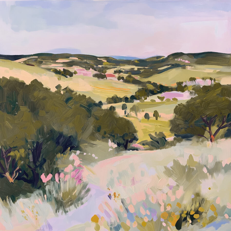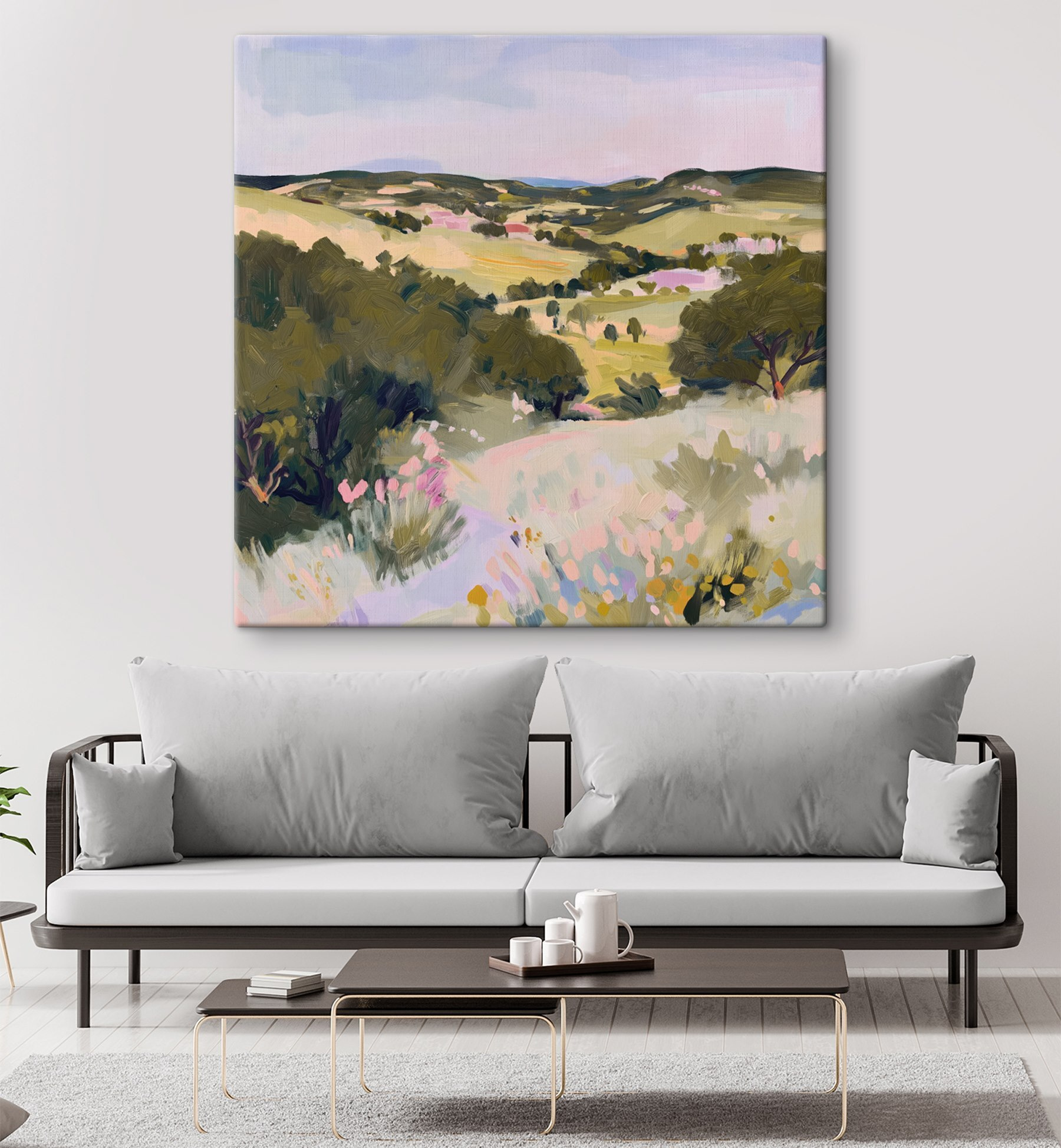 Wyobraź sobie, że budzisz się z kawą w ręku i widzisz ten wspaniały wydruk na płótnie – spokojny krajobraz z łagodnymi wzgórzami i szepczącymi drzewami. To jak powiew świeżego powietrza we wnętrzu, nadający przestrzeni spokojny klimat. Te miękkie, falujące zielenie i pastelowe róże praktycznie zapraszają na wyimaginowany spacer. To nie tylko sztuka; to mini-wakacje na ścianie. Idealny dla marzycieli lub każdego, kto chce uciec od codziennego zgiełku bez wychodzenia z pokoju. Twój przytulny kącik właśnie znalazł bratnią duszę!